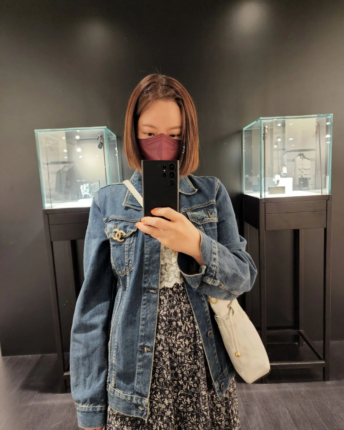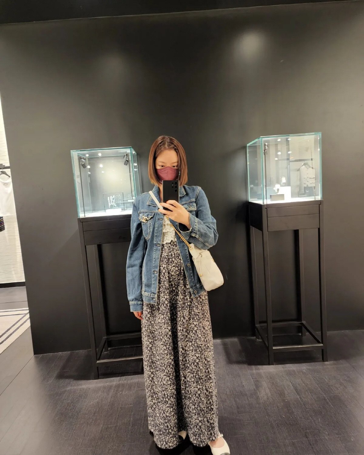 사진 속에는 외출 중인 황정음의 일상 모습이 담겨있다. 거울에 비친 자신의 모습을 카메라에 담고 있는 황정음. 꽃무늬 의상에 청자캣을 매치한 봄 느낌 물씬 풍기는 스타일을 선보였다. 여기에 명품 C가 브로치로 포인트를 줘 스타일링을 완성시켰다.