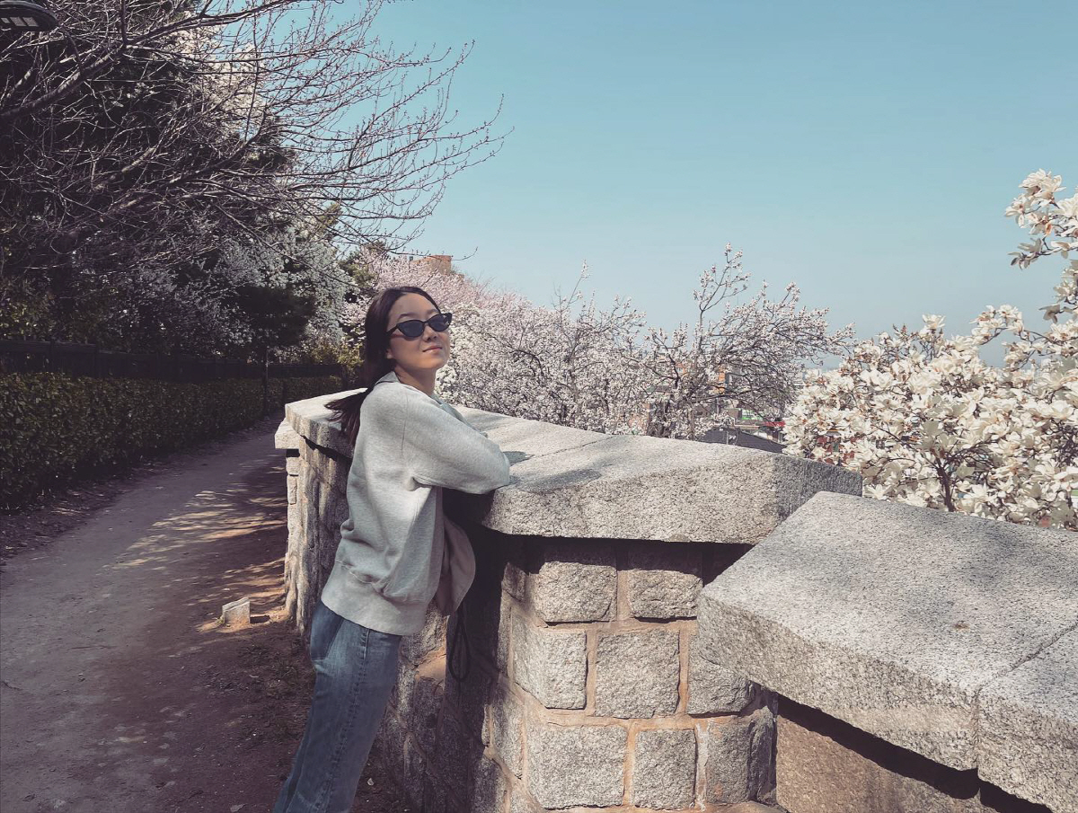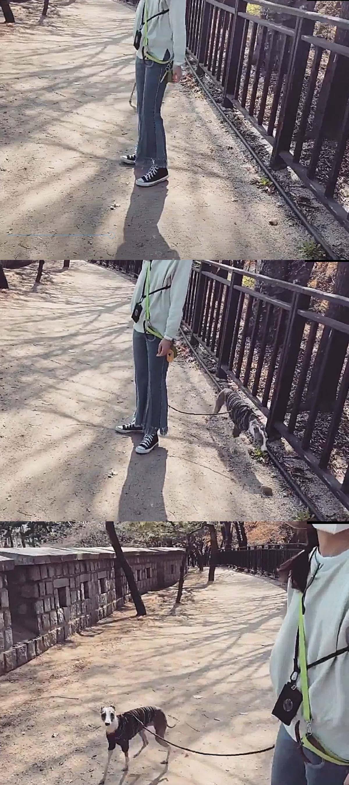영상에는 반려견을 산책 중인 모습이 담겨 있다. 공효진이 좋은 날씨를 만끽하기 위해 나들이 나온 것으로 보인다.