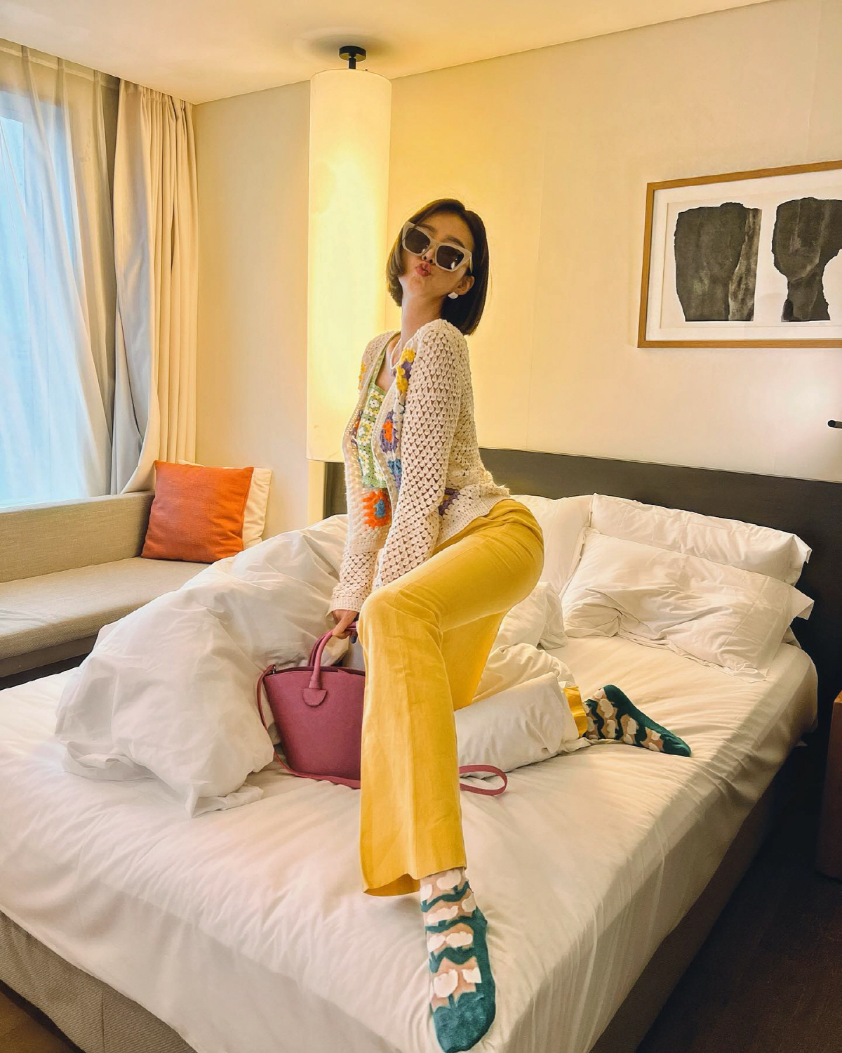 이와 함께 공개한 사진에는 호텔에서 포즈를 취하는 지소연 모습이 담겼다. 사진 속 지소연은 꽃 모양의 니트 소재의 화려한 옷차림을 입고 있다. 화려한 패턴이 봄과 잘 어울려 눈길을 끈다.