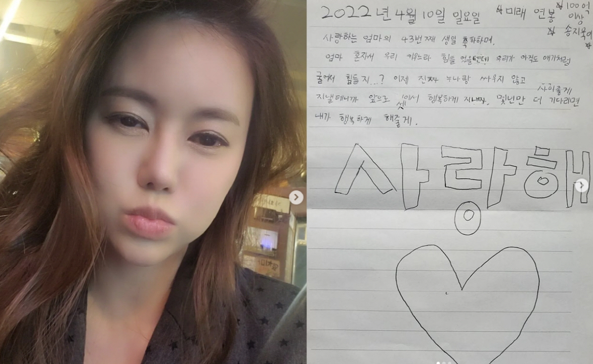 또다른 사진에는 "엄마 생일축하해요. 시합 때 잘하지 못해서 미안해요. 앞으로 더 노력하는 멋진 선수가 될 게요. 너무 힘들더라도 조금만 더 지켜봐주세요. 항상 너무 고맙고 사랑하는 엄마, 생일 축하하고 너무너무 사랑해요"라는 송지아 양의 마음이 담겼다.