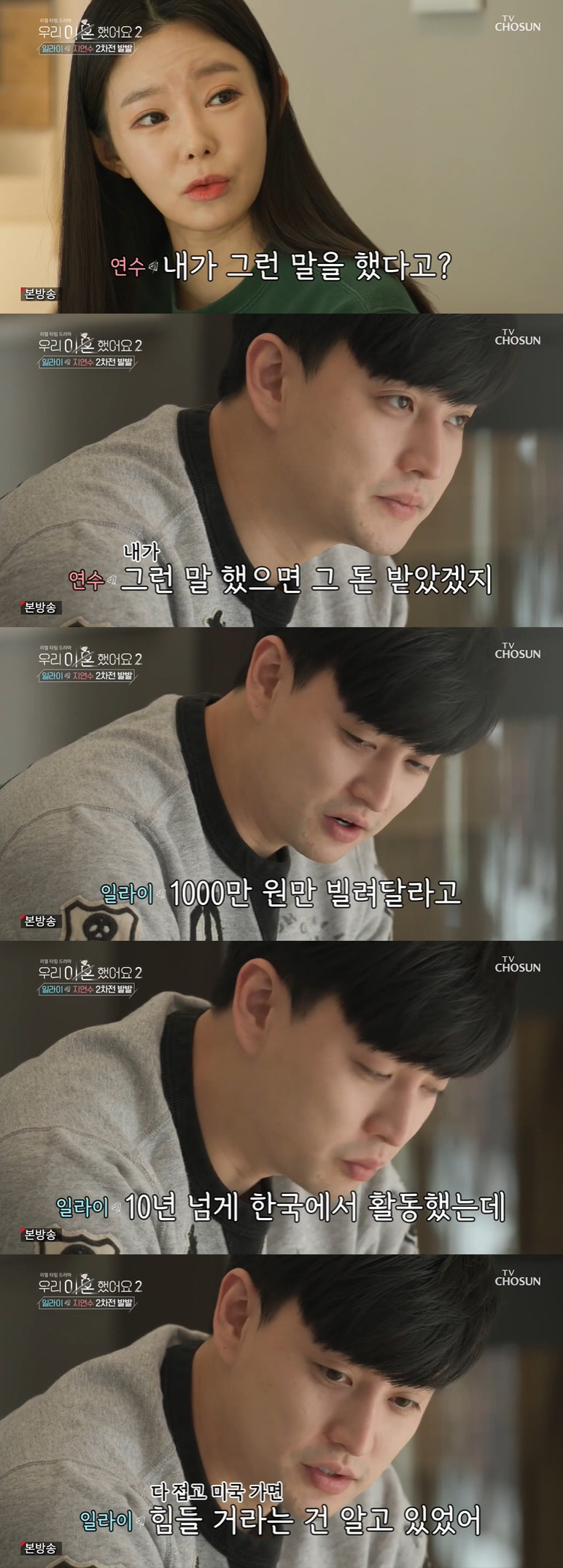 이에 일라이는 "만약 너무 힘들면 민수랑 여보는 한국에 살고 내가 여기서 돈 벌겠다고 하지 않았냐. 그랬더니 이혼하자 하지 않았냐"고 항변했지만 지연수는 "그게 무슨 가족이냐. 그렇게 따로 살아서 돈 보내주면? 너희 가족의 최종 목적은 우리 결혼을 끝내게 하는 것"이라 받아쳤다.
