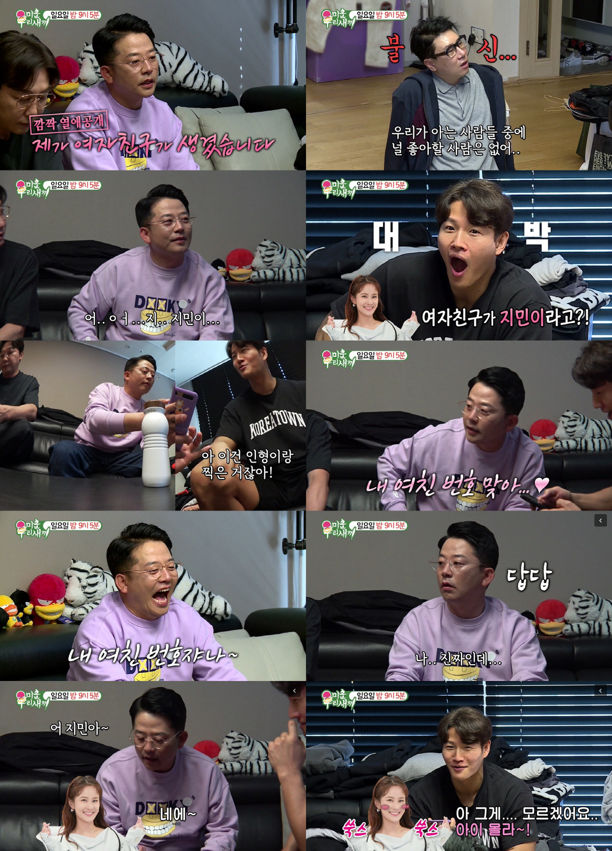 답답해하던 김준호는 "내 여친 번호"라며 김지민에게 직접 전화를 걸었다. 핸드폰 속 김지민의 애칭은 '조랑이'. 김준호는 "좋아하고 사랑하는 조랑이"라며 자랑했다.