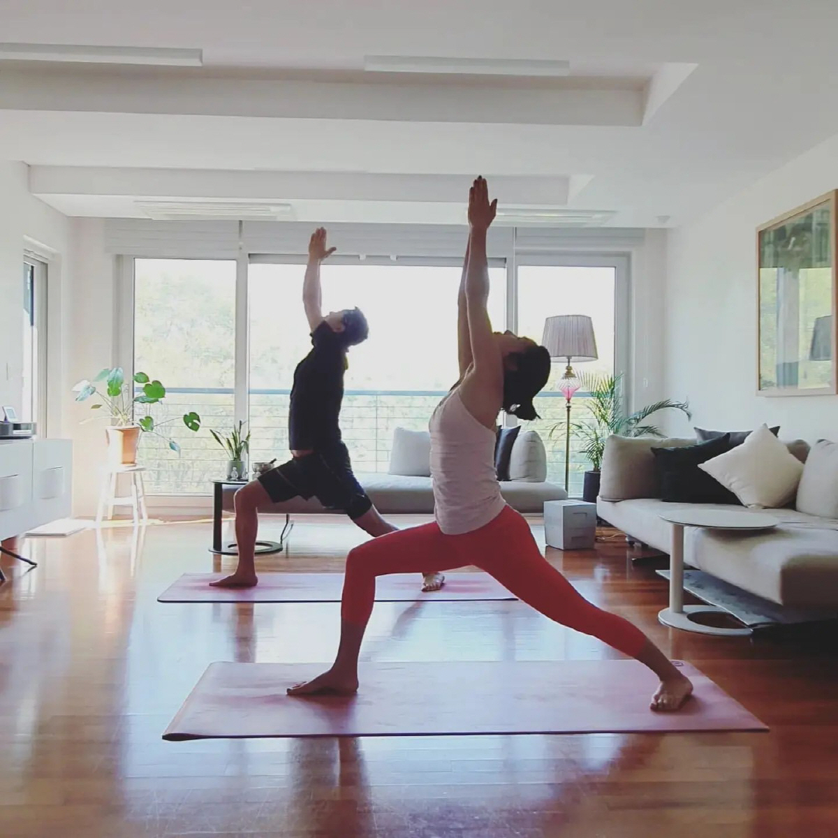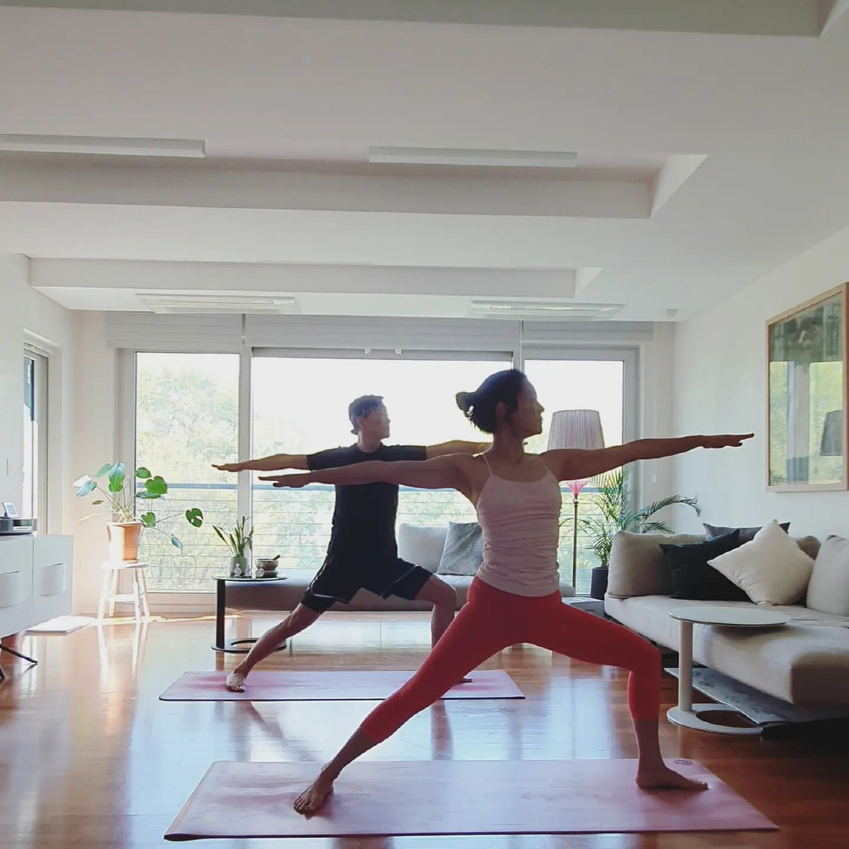 사진 속 김지호, 김호진 부부는 집에서 함께 부부요가 수련을 하고 있는 모습. 민소매에 레깅스를 입은 김지호는 요가로 가꾼 탄탄한 몸매를 자랑해 시선을 사로잡는다. 김호진은 아내 김지호 못지않은 요가 실력을 뽐내 감탄을 자아낸다.