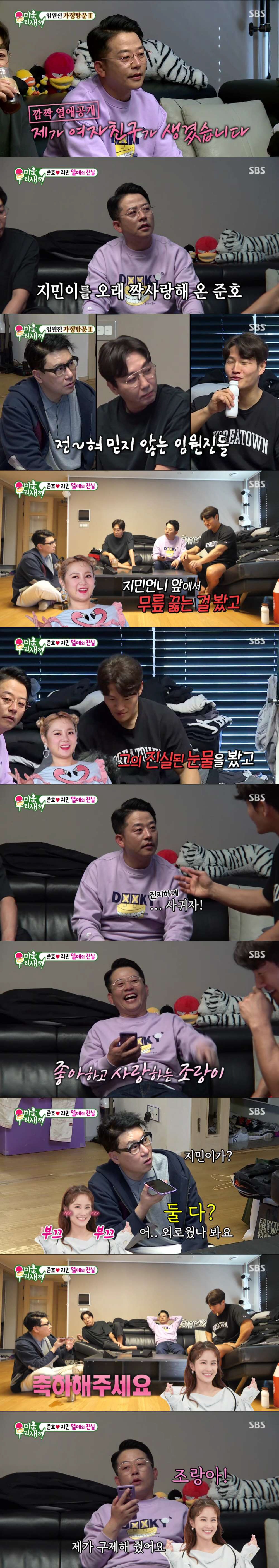 이에 김준호는 "지민이를 내가 오랫동안 짝사랑해왔다"고 고백했다. 그래도 도저히 믿기질 않자 지민에게 전화를 해보라고 했다. 김종국과 이상민이 전화 연결을 시도했으나 받질 않자 준호는 박나래가 둘 사이를 알고 있다며 나래에게 전화를 걸었다. 첫 전화에 나래는 장난인 줄 알고 "둘이 안 사귄다"고 말하고 끊었으나 이내 다시 전화를 걸어온 나래는 "저는 준호 선배가 지민 언니 앞에서 무릎 꿇는 걸 봤고, 그의 진실된 눈물을 봤다"라고 말했다.