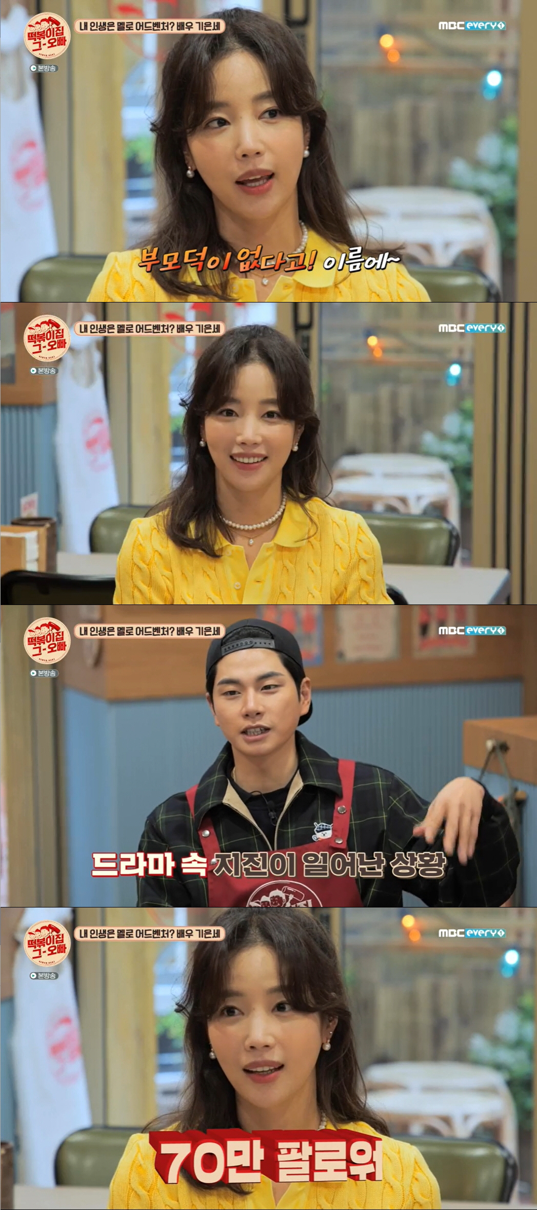 이날 주제는 '내 인생의 장르는?'이었다. 메뉴는 기름 떡볶이, 가게 앞에는 큼지막한 차가 한 대 섰다. "엄청난 분이다" "비싼차다"라며 웅성웅성대는 떡볶이집에 배우 기은세가 들어섰다. 기은세는 "밖에서 소리를 지르고 그렇더라. 아이돌이 있는 줄 알았다"라며 칭찬했다.
