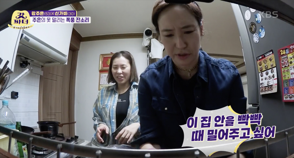 가비는 "너무 바쁘다 보니"라고 변명했지만, 강주은은 "이건 사람 사는 곳이 아니다"라며 정리에 나섰다. 가비는 "고기는 뒀다 나중에 볶아 먹어도 된다"고 배달음식을 남겨주길 바랐지만, 강주은은 "우리집 개한테도 안준다"며 전부 치워버렸다.