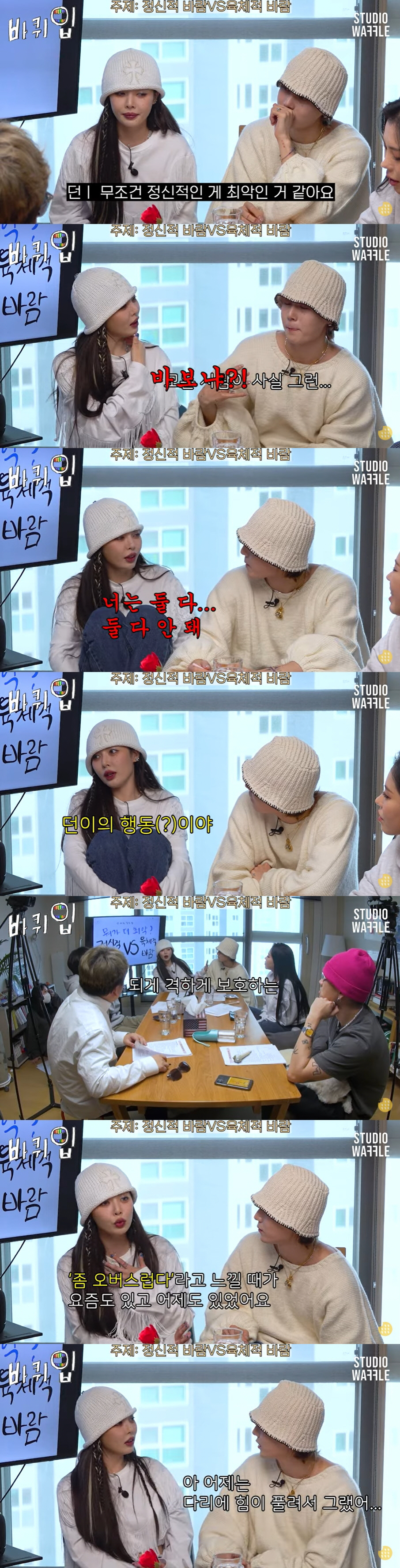 이어 현아는 "최악은 던의 행동이다. 내가 길만 걸어도 뒤에서 지나가는 분이 있으면 나를 안쪽으로 밀어넣는다. 되게 격하게 보호한다. '좀 오버스럽다'고 느낄 때가 요즘도 있고 어제도 있었다"고 했다. 그러자 던은 "어제는 다리에 힘이 풀렸다. 오르막길이었다"고 해 폭소를 자아냈다.
