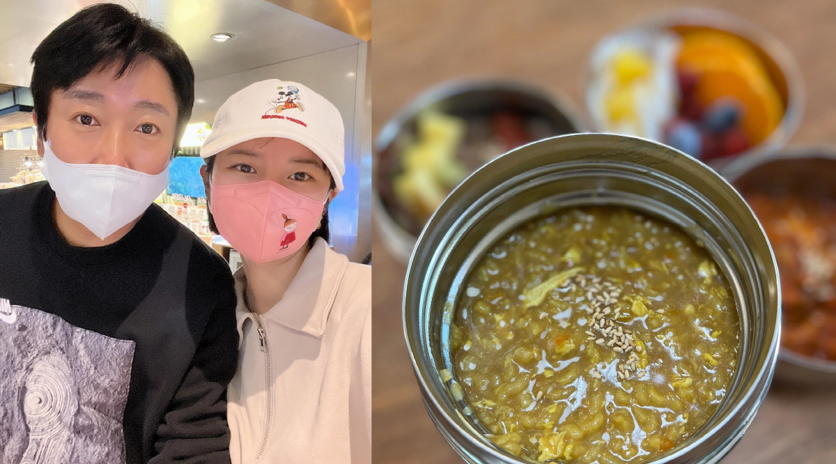 공개된 사진 속에는 박지연이 이수근을 위해 준비한 도시락이 담겼다. 임플란트 때문에 음식을 잘 씹지 못하는 이수근을 위해 박지연은 카레계란죽을 챙겨줬다. 김치에 후식까지 준비한 박지연의 내조가 돋보인다.