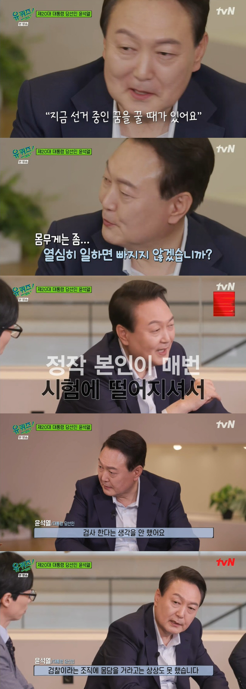 [스포츠조선 고재완 기자] 윤석열 대통령 당선인이 tvN '유퀴즈 온 더 블럭'(이하 유퀴즈)에 출연해 눈길을 끌었다.