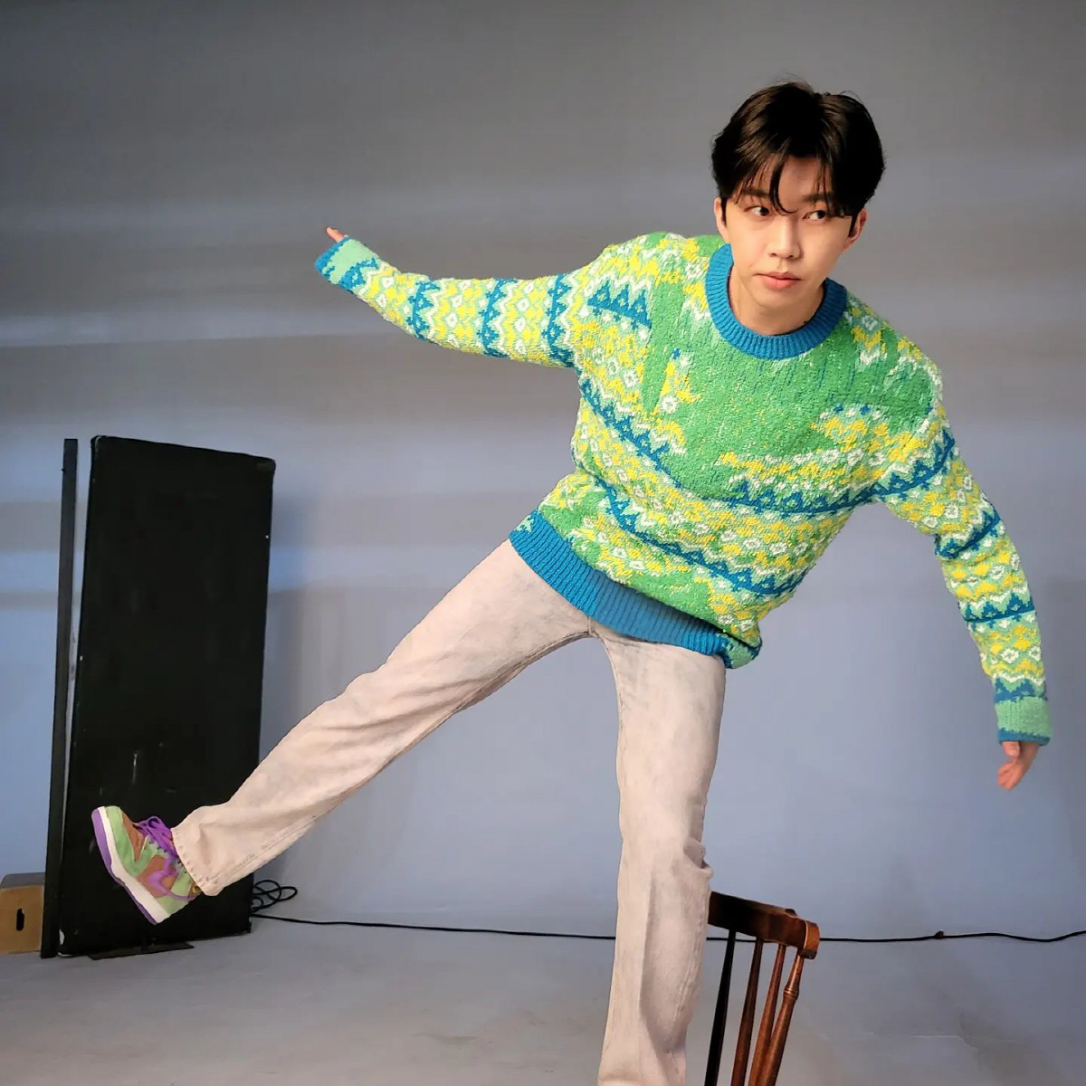 이는 새 앨범 콘셉트 포토 촬영장에서 찍은 사진으로 보인다. 그가 이날 SNS을 통해 첫 정규앨범 '아임 히어로' 콘셉트 포토를 공개하자, 비하인드컷도 함께 공개한 것으로 보인다.