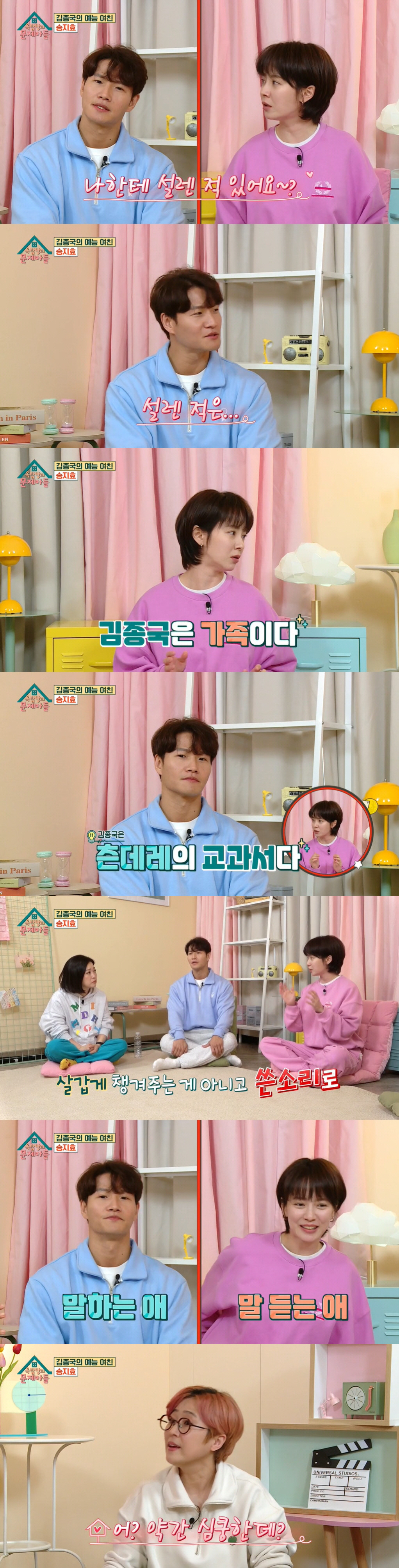 이날 송지효는 김종국에 대해 "진짜 가족같다. 츤데레의 교과서다. 살갑게 챙겨주는 게 아니고 쓴소리로 챙겨준다"고 했다.