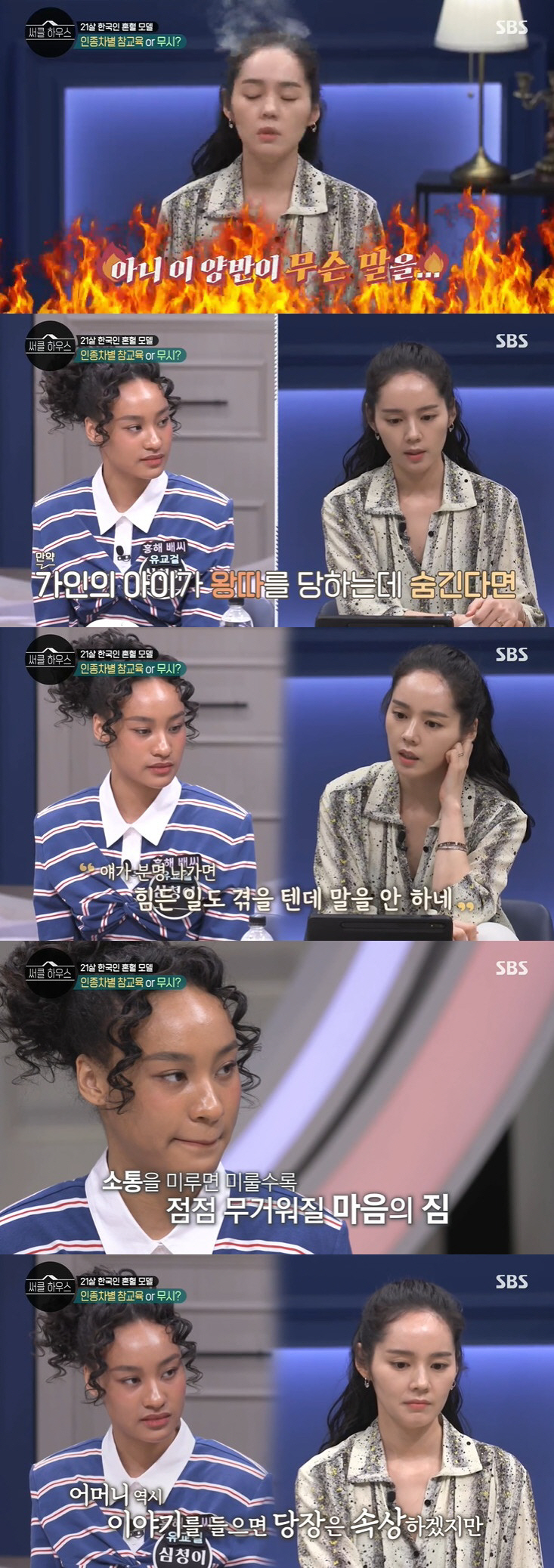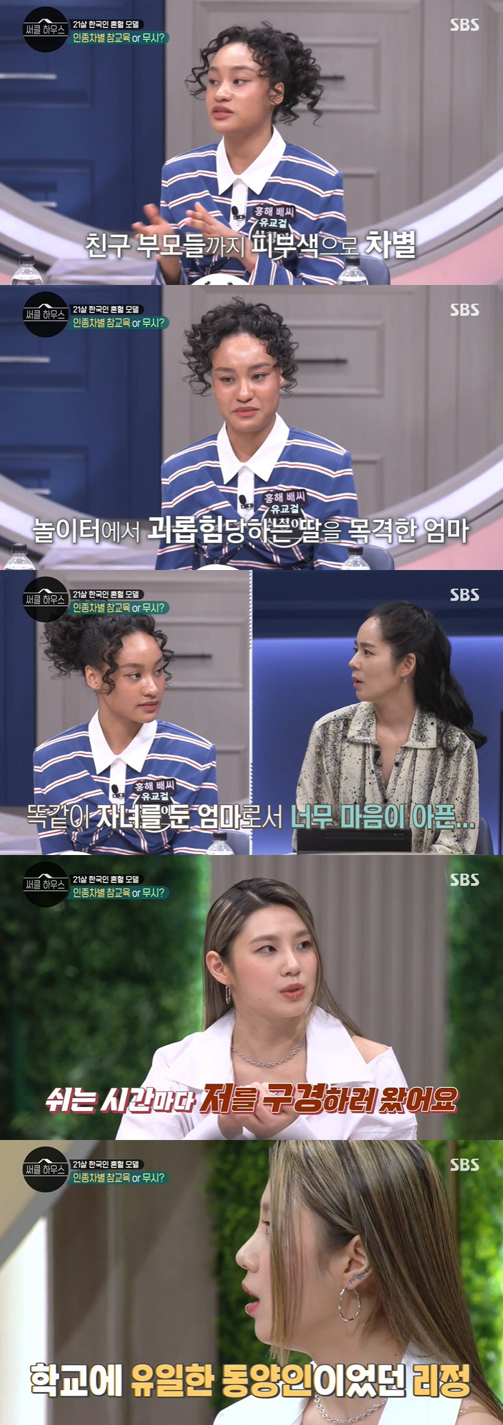 친구 부모님들까지 피부색으로 차별한 적이 있었다는 심청이는 "엄마도 상처가 될까 봐 엄마한테는 말 안 했다. 근데 어느날 놀이터에서 괴롭힘을 당하는 걸 엄마가 본 거다. 엄마가 그걸 보고 충격을 많이 받으셨다"며 눈물을 보였다.