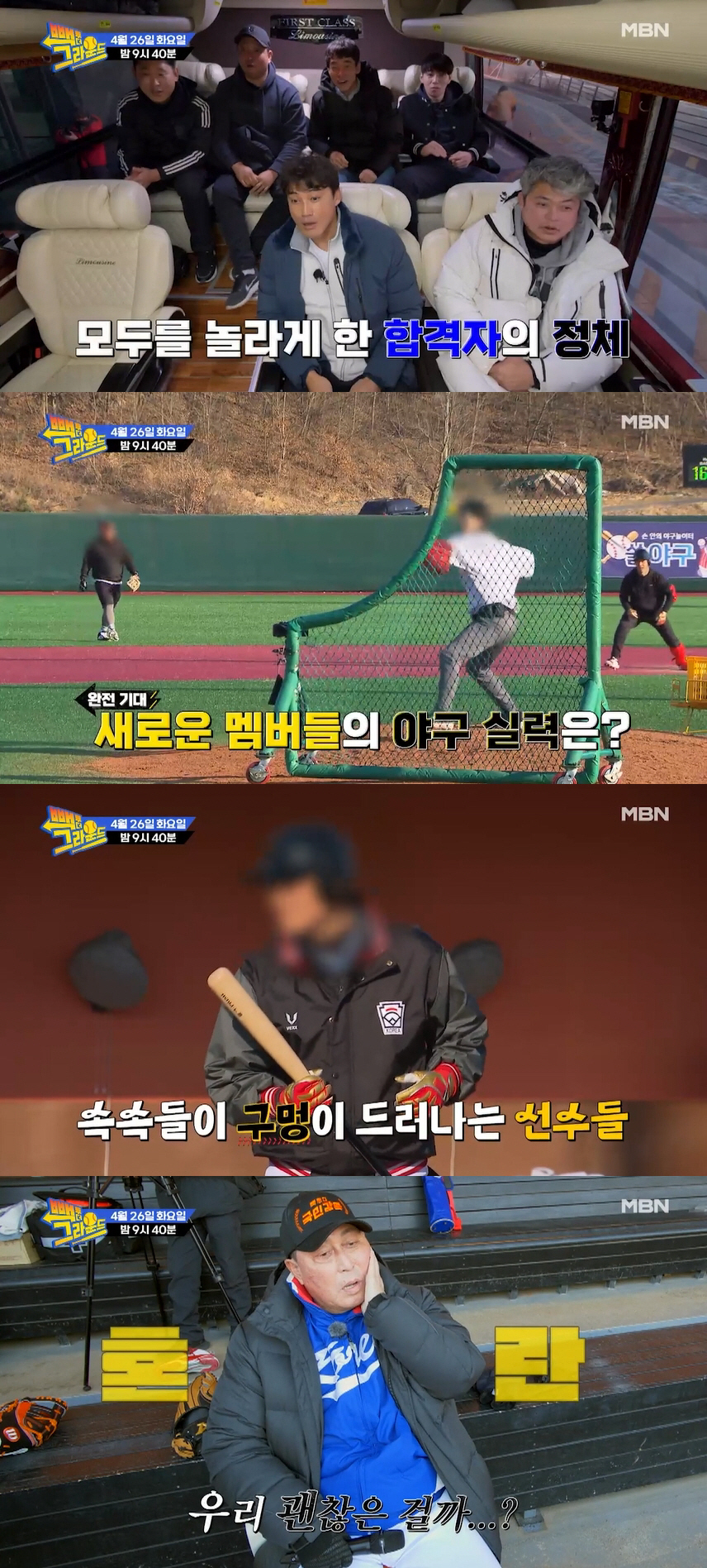 26일 방송 예고 영상에는 기존 멤버들과 입단 테스트에 합격한 뉴페이스들의 만남이 담겨 시선을 집중시킨다. 안경현, 홍성흔, 현재윤, 채태인, 이대형, 윤석민은 버스에 탑승하는 합격자들을 보고 깜짝 놀란 반응을 보여 호기심을 유발하고 있다.