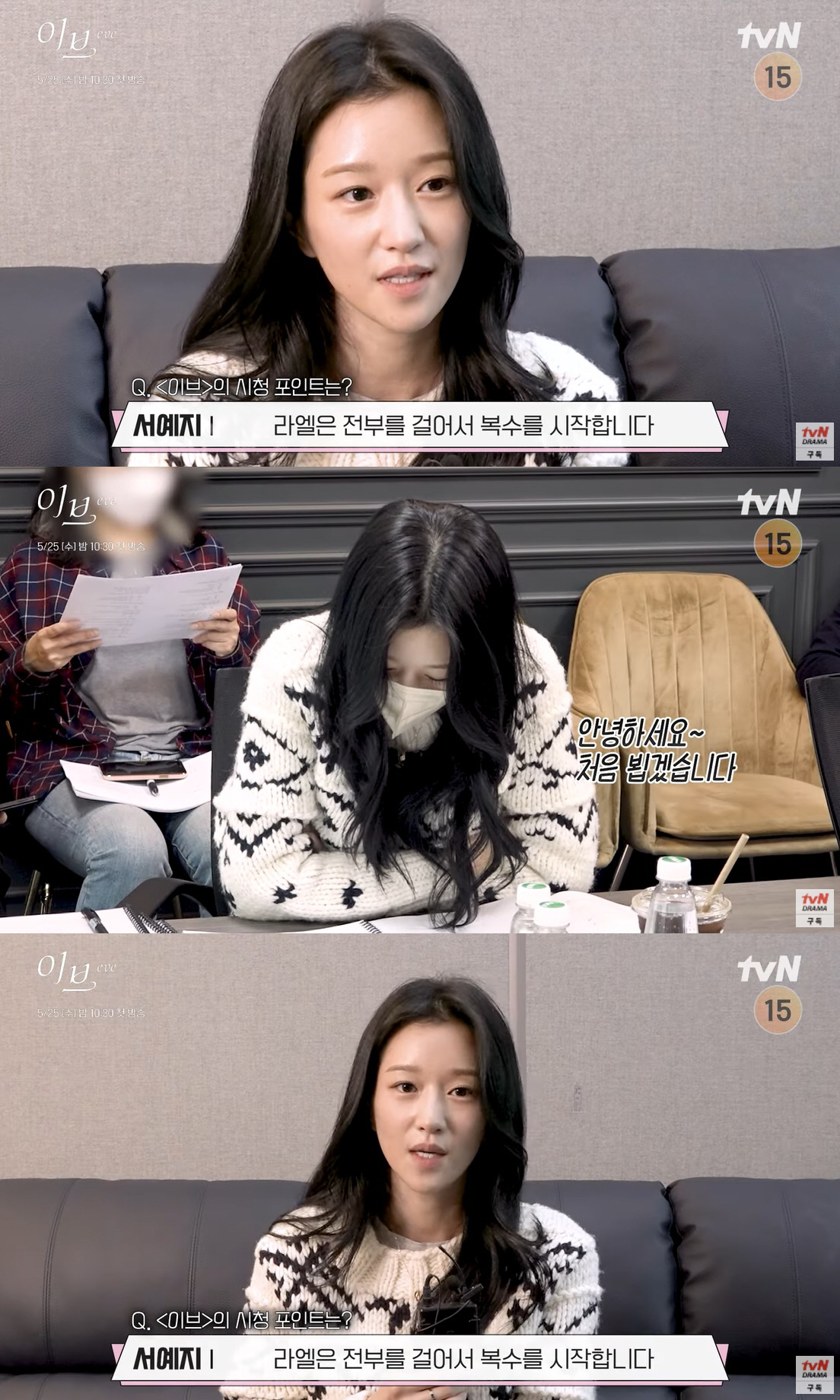24일 tvN drama 공식 유튜브 채널에는 5월 25일 시작하는 드라마 '이브' 제작기 영상이 공개됐다. 이 영상에는 주연배우들의 캐릭터 소개 등 인터뷰가 담겼다.