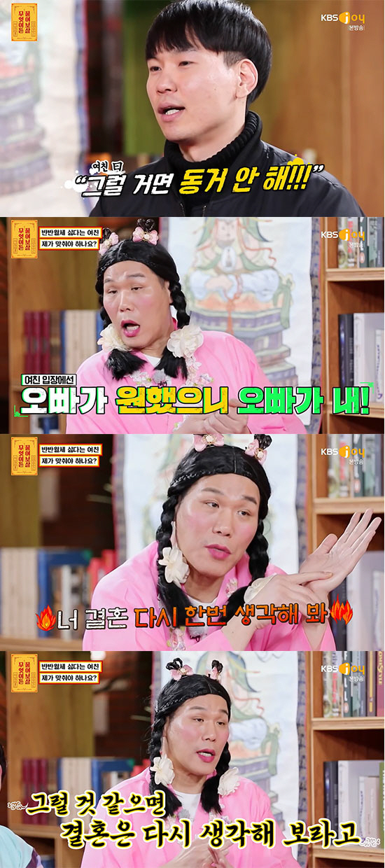 [스포츠조선닷컴 이지현 기자] 방송인 서장훈이 동거를 준비하면서 갈등을 빚고 있는 의뢰인에게 '결혼을 다시 생각해라'고 경고했다.