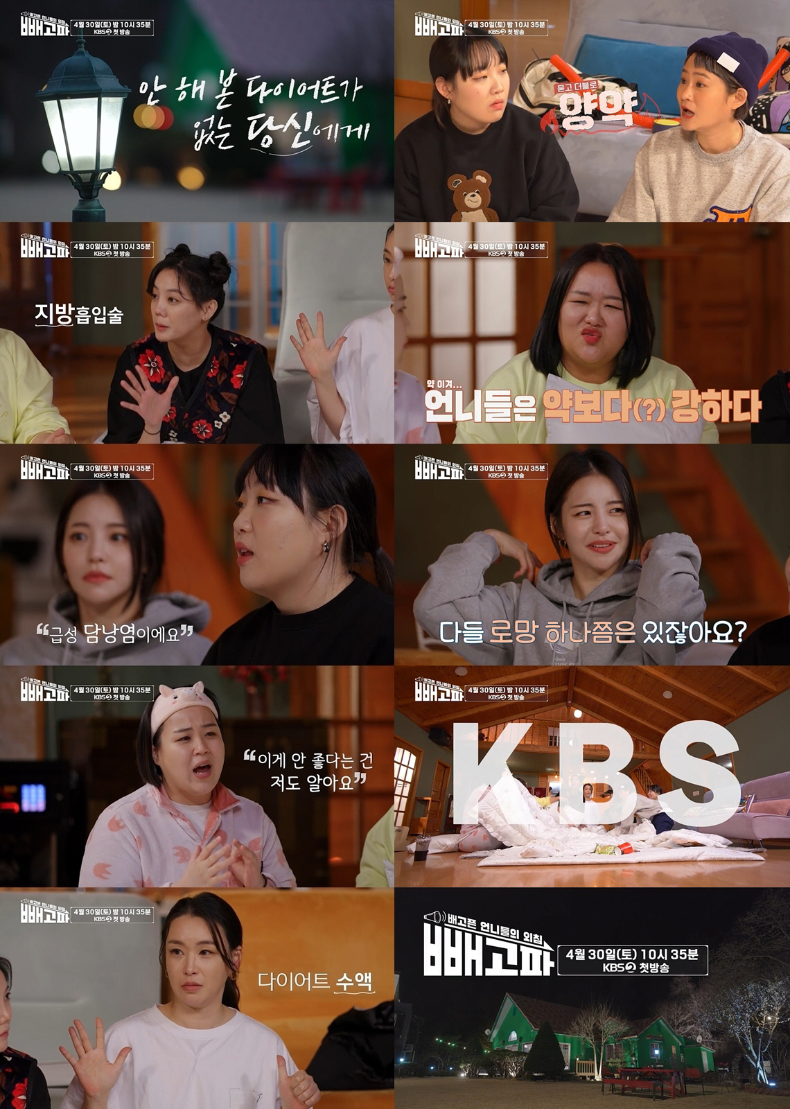 하지만 이대로 무겁게만 있을 '빼고파' 언니들이 아니었다. 지방 흡입술부터 약까지 안 해 본 다이어트가 없는 언니들이지만, 거침없고 솔직한 모습으로 다이어트 의지를 활활 불태워 웃음을 자아냈다. 특히 다이어트에 성공해 드레스를 입어 보고 싶다는 브레이브걸스 유정이 아슬아슬 수위를 넘나드는 포즈를 취해 폭소를 유발하기도. 급기야 메인 MC 김신영이 "여기 토크 거름망 좀 하나 주세요"라고 말해 '빼고파'가 얼마나 유쾌하고 거침없을지 기대하게 만든다.