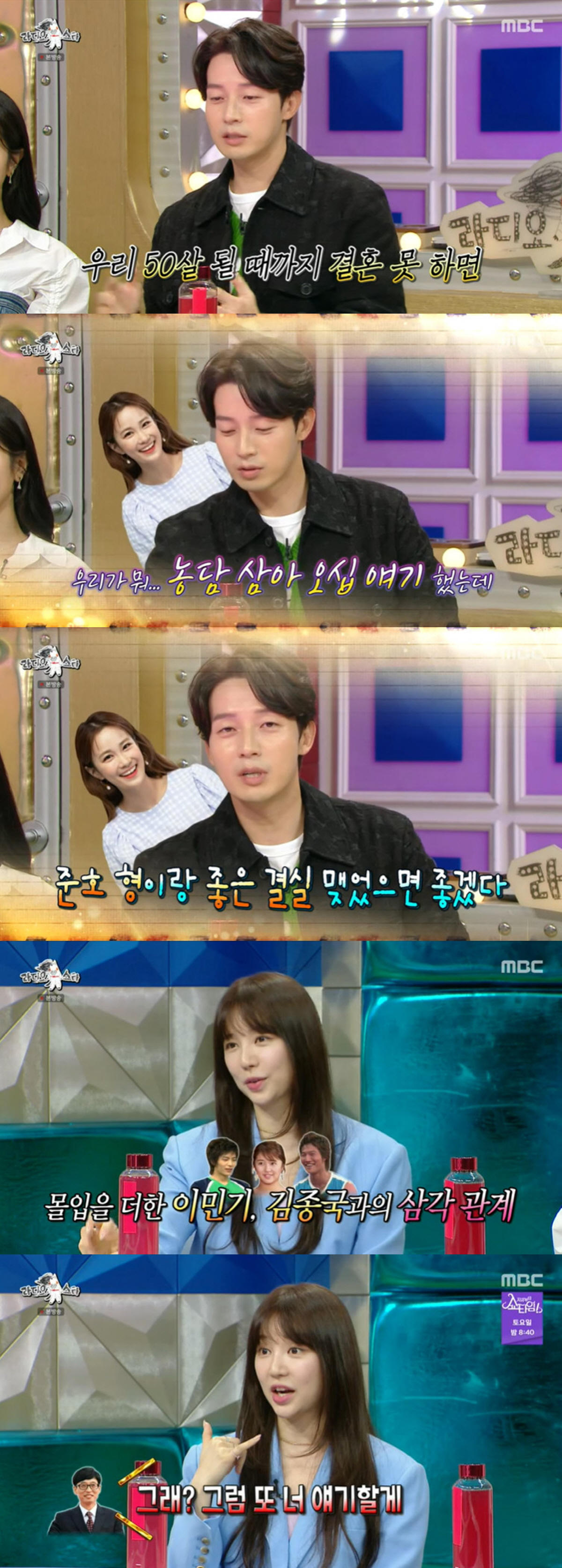 결혼까지 약속했던 사이였지만 이젠 형수님이 됐다. 허경환은 "얼마 전에 준호 형을 만났는데 지민이라 하니까 '형수야'라고 정정하더라. 준호 형이 멀끔해졌다. 이제 냄새 안 난다"고 밝혔다. 이어 허경환은 "농담 삼아 오십 얘기를 했는데 8년을 못 기다리고 하는구나. 좋은 결실 맺었으면 좋겠다"고 김지민에 영상편지를 보냈다.