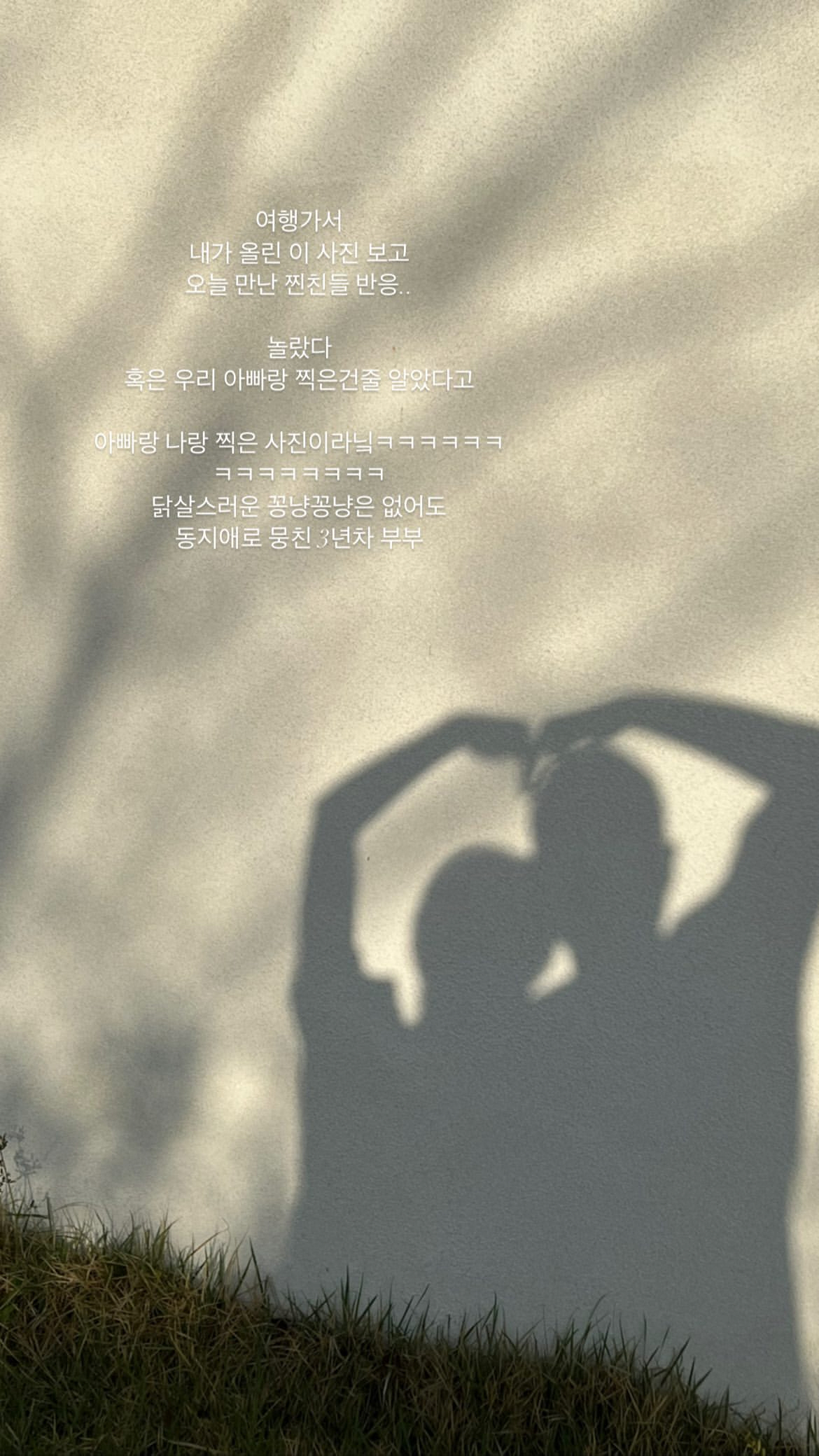 사진에는 최희와 남편의 그림자가 담겨 있다. 두 사람은 머리 위로 하트를 그리는 포즈까지 취하며 애정을 뽐낸 모습. 그러나 친구들로부터 아빠와 찍은 사진으로 오해를 받았다는 최희는 "아빠랑 나랑 찍은 사진이라니. 닭살스러운 꽁냥꽁냥은 없어도 동지애로 뭉친 3년 차 부부"라고 밝혔다.