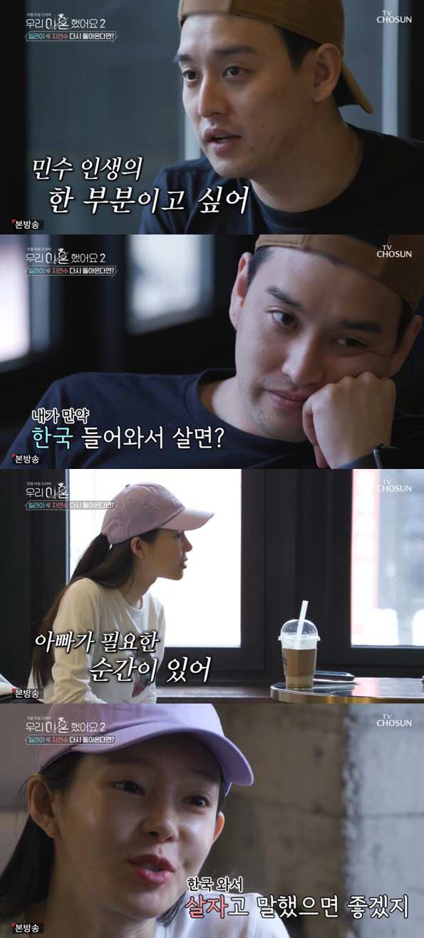 먼저 지연수는 민수가 일라이를 만나는 것에 대해 걱정하며 "나는 민수가 아빠를 만나고 상처를 받을까봐 걱정된다. 자기가 원할때 아빠가 없다고 생각할까봐. 민수와의 만남을 혼자 결정하지 않았으면 좋겠다. 같이 상의하고 민수한테 말하는 게 나을 것 같다"고 말했고, 일라이는 "진짜 어려운 숙제다"라고 고민했다.