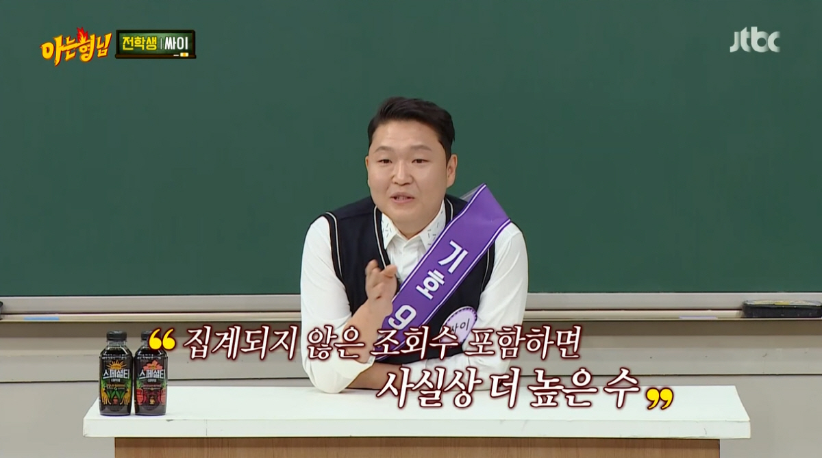 싸이는 "나는 44억뷰의 사아니다"라며 자신을 소개했고, 강호동은 "전 세계 절반 이상이 본 거네"라며 놀라했다. 이진호는 "왜이렇게 관리를 했냐"라고 살빠진 싸이를 지적했다.