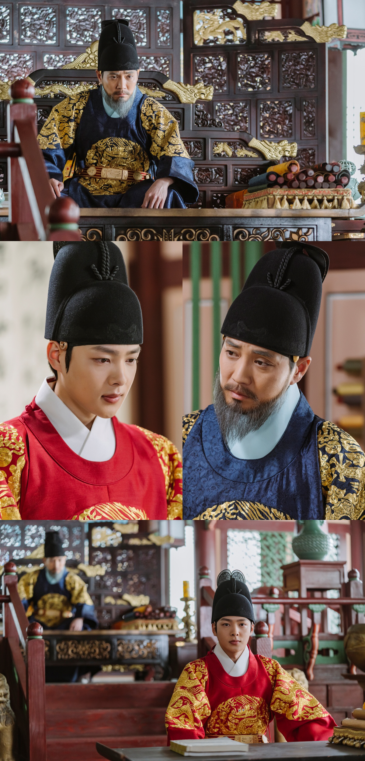 또 다른 사진에는 어좌 앞 서탁을 마련하고 그 자리에 앉아 신하들에게 차분하게 자신의 의견을 전하고 있는 이도의 모습이 담겨 있다. 그는 신하들에게 "오늘부터 편전에도 사관을 들일 것이오"라고 선언한다고. 이방원은 이도의 말이 자신을 향해 있음을 알지만, 가만히 듣고만 있다. 그는 논리적으로 자신의 뜻을 펼치는 아들의 모습을 유심히 지켜보게 된다.