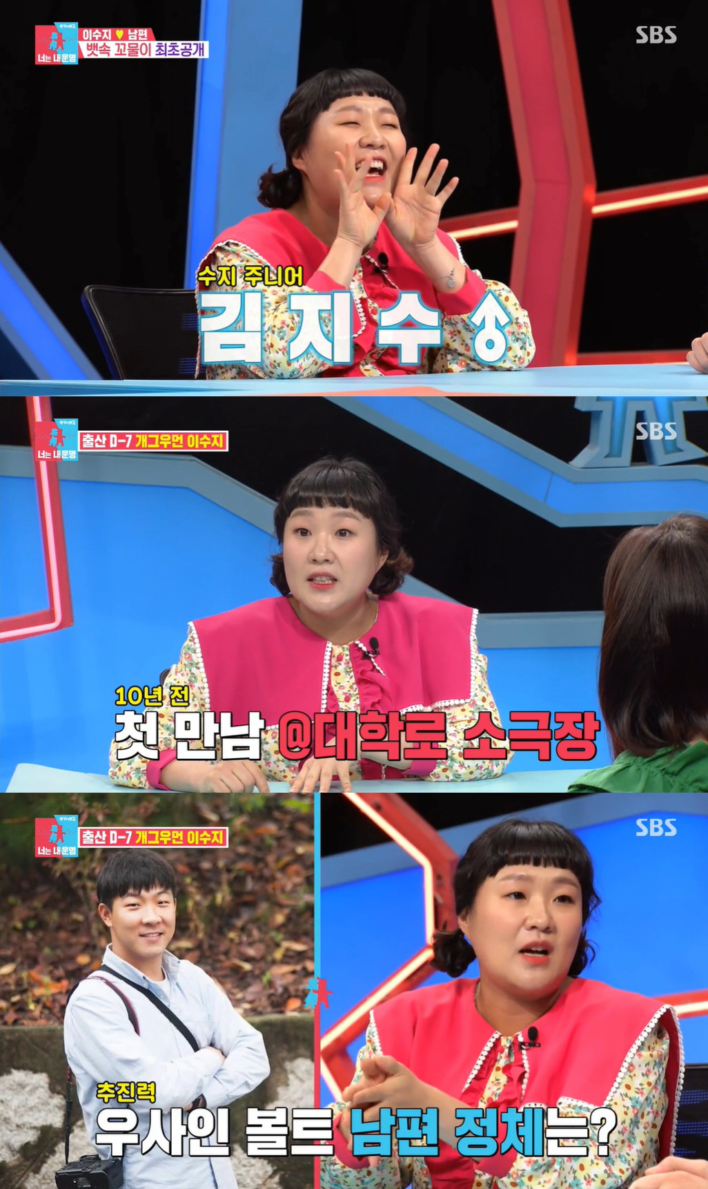 한편 이수지는 지난 2018년 연하의 비연예인과 결혼했다. 현재 임신 중인 이수지는 30일 방송된 SBS '동상이몽2-너는 내 운명'에 출연해 "남편이 나를 10년 동안 짝사랑했다"며 러브스토리와 함께 "2세는 아들, 이름은 김지수"라고 밝혀 눈길을 끌었다.