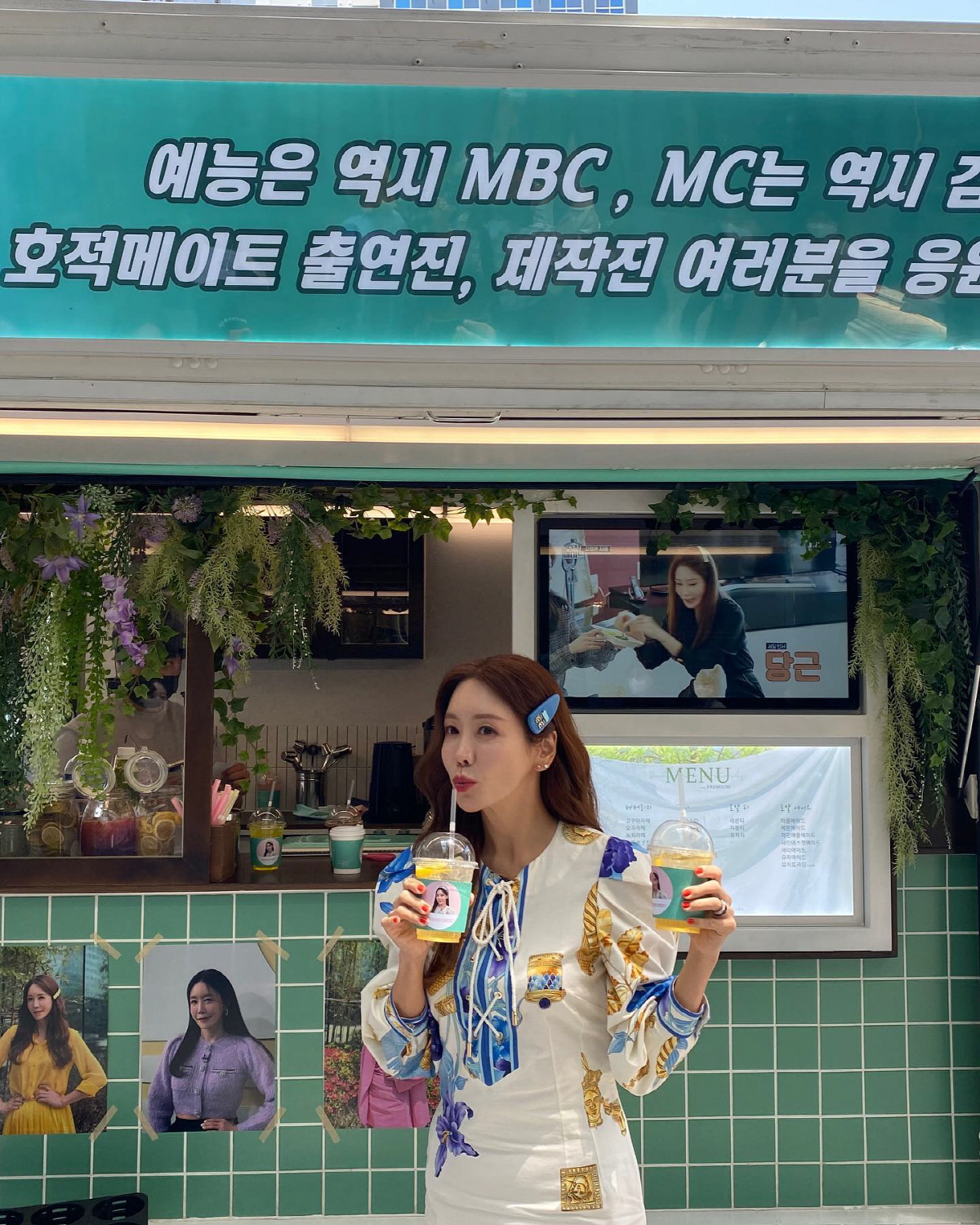 공개된 사진에는 김정은이 커피차 앞에서 포즈를 취하는 모습이 담겼다. 이 커피차에는 "예능은 역시 MBC, MC는 역시 김정은. '호적메이트' 출연진, 제작진 여러분을 응원합니다"라는 문구가 적혀 있다.