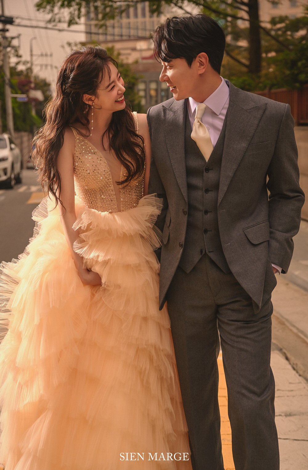 해피메리드컴퍼니는 3일 앤디와 이은주 아나운서의 웨딩 화보를 공개했다. 웨딩 화보 속 두 사람은 행복과 설렘이 가득한 분위기로 시선을 사로 잡았다. 예비 신부를 향한 앤디의 자상한 미소, 앤디에게 환하게 웃어주는 이은주 아나운서의 아름다운 비주얼이 그림처럼 느껴진다.