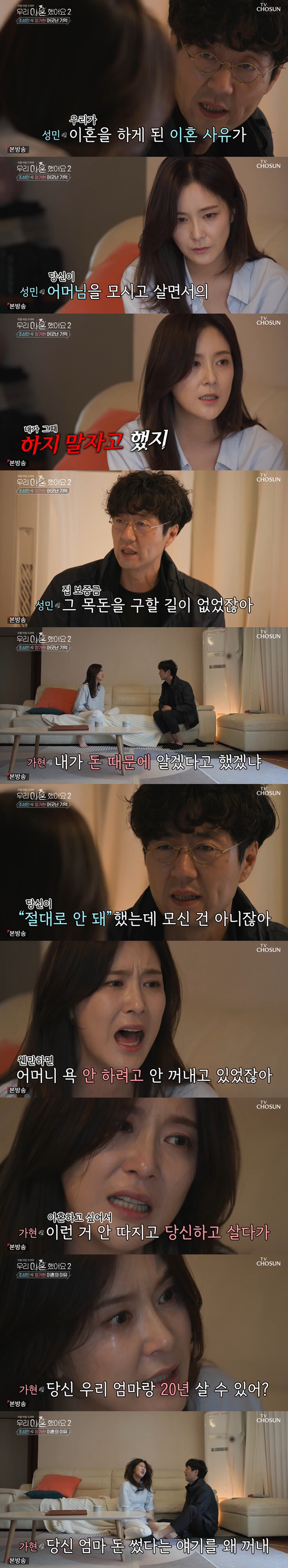 [스포츠조선닷컴 정유나 기자] '우리 이혼했어요2' 장가현과 조성민이 이혼 사유에 대해 얘기하며 오열했다.