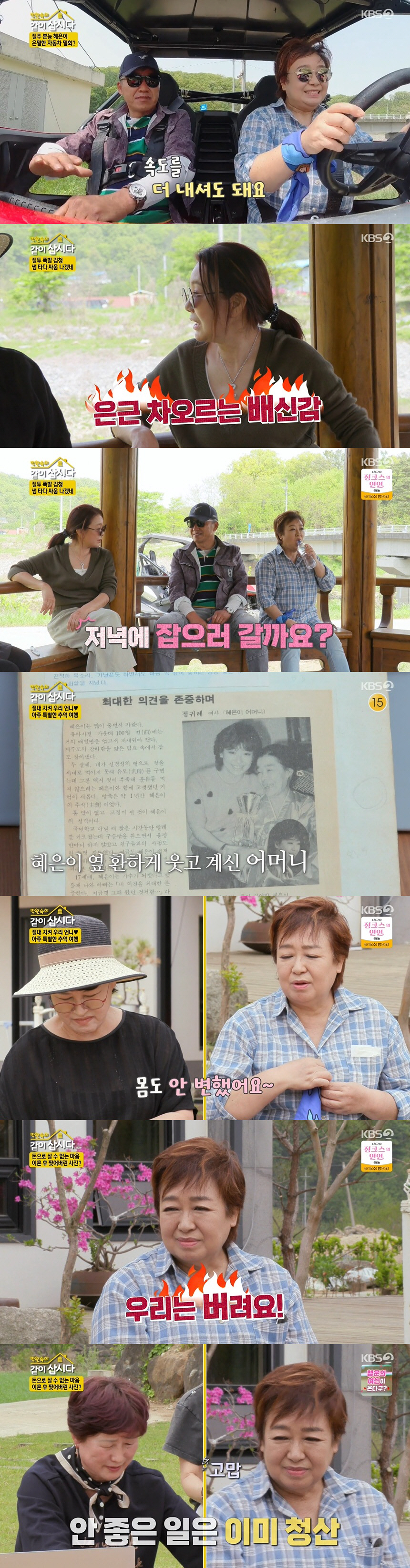 또 박원숙은 팬들에게 "혜은이가 결혼했다가 이혼하지 않았냐. 결혼사진도 수집했을 텐데 이혼했을 때는 버렸냐"고 물었다. 그러자 팬들은 "우리는 버린다. 그런 건 다 잊어버리고 없다. 안 좋은 소식은 우리랑 관계없다. 가슴 아픈 일은 잊어야 한다"며 단호하게 답했다. 이를 들은 박원숙은 "무조건 내 편인 거다"라며 감탄했다.