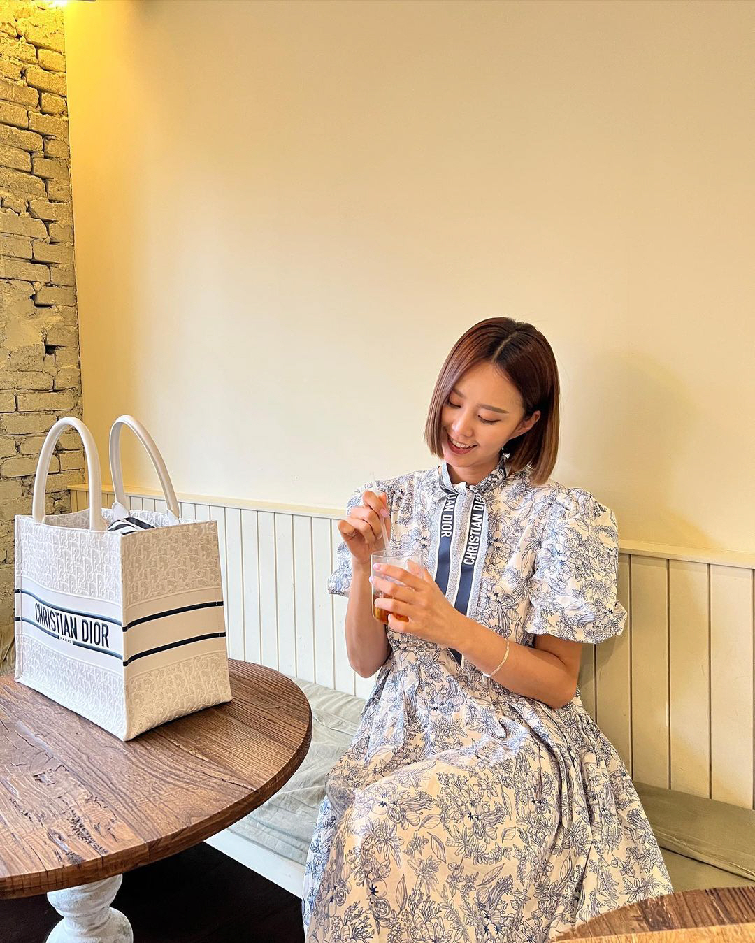 사진 속에는 카페에서 힐링 중인 지소연의 모습이 담겨있다. 환한 미소에서 즐거움과 여유로움이 느껴졌다. 이날 지소연은 화려한 스타일의 원피스를 착용, 앞서 남편 송재희에게 생일선물로 받은 명품 가방과 찰떡 스타일링이었다.