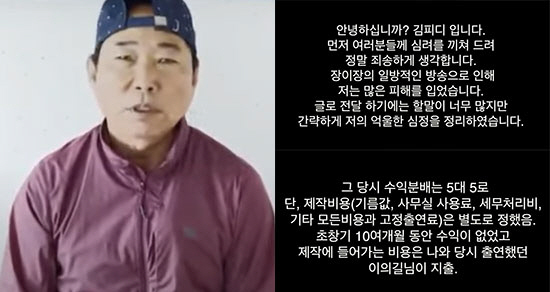 그러나 김피디는 "갑자기 지난해 11월경 장이장이 기존 계약을 무시하고 본인이 70%, 내가(김씨) 30% 하자며 일방적으로 요구했다. 유튜브 채널에 대한 애착이 있어서 을의 입장으로 계약서를 썼다. 저의 수입 30%에는 기름값, 사무실 비용, 장이장 세금까지 모두 포함됐다"고 밝혔다.