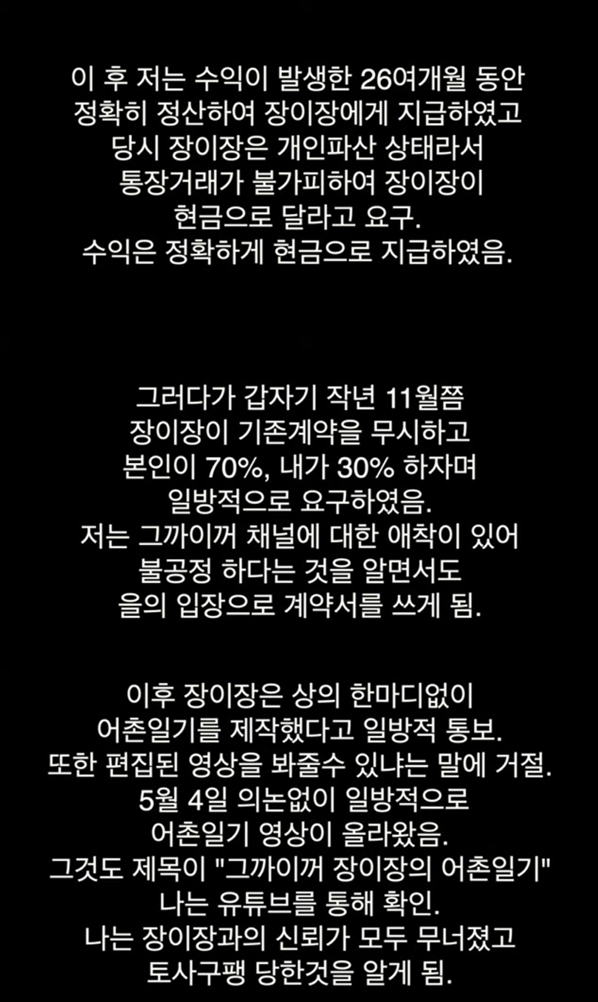 김PD는 "나는 장이장과의 신뢰가 모두 무너졌고 토사구팽 당한 것을 알게 됐다"며 "그까이꺼를 못하게 돼서 어촌일기를 만들었다는 것은 100% 거짓말"이라 주장했다.