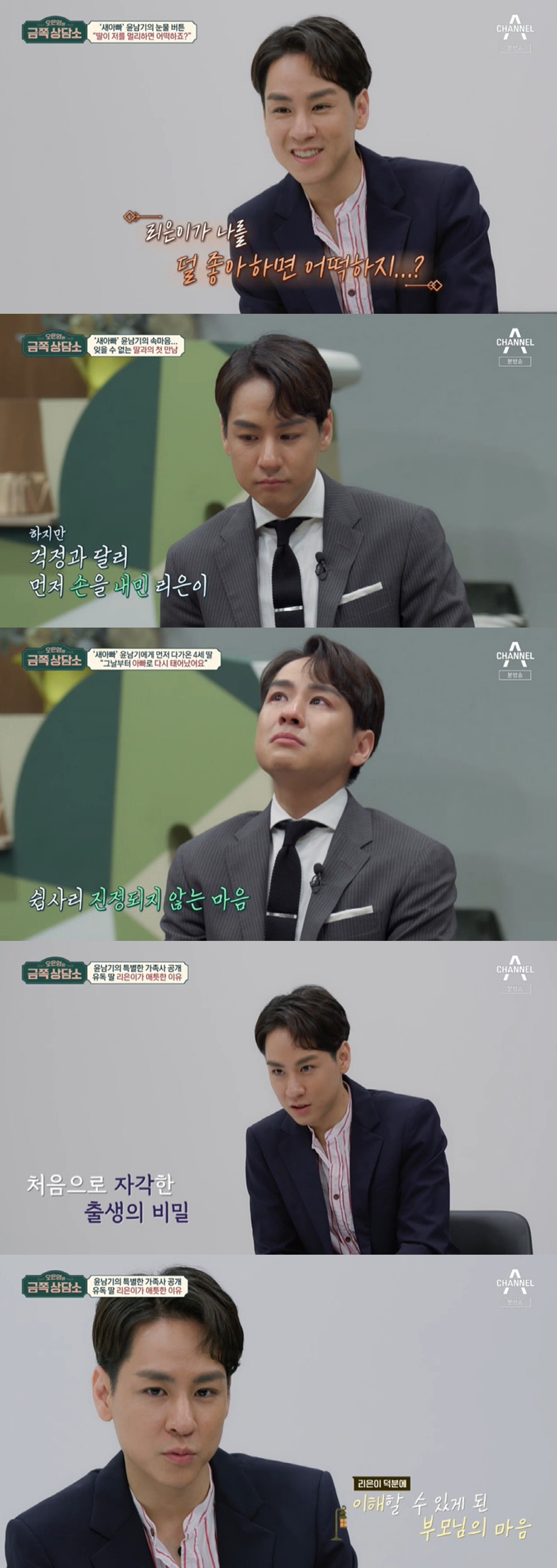 오은영은 리은이를 처음 봤을 때 윤남기의 속마음을 물었다. 윤남기는 "이런 상황을 상상해보지 못했다. 저희가 둘이서는 분위기가 좋았는데 처음 딸이 나왔을 때 긴장했다. 걱정했던 것과는 다르게 친근하게 다가오더라"라고 떠올리다 울컥한 듯 눈물을 보였다.