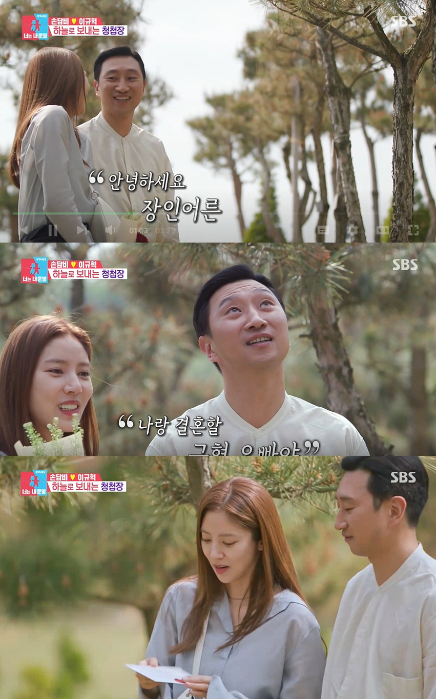 나무를 심어놓은 산소에서 이규혁은 "안녕하세요 장인어른, 담비를 책임질 규혁입니다"라고 인사했고 손담비는 "나랑 결혼할 규혁오빠, 처음 같이 오는데 심장이 튀어나올 것 같다"고 전했다.