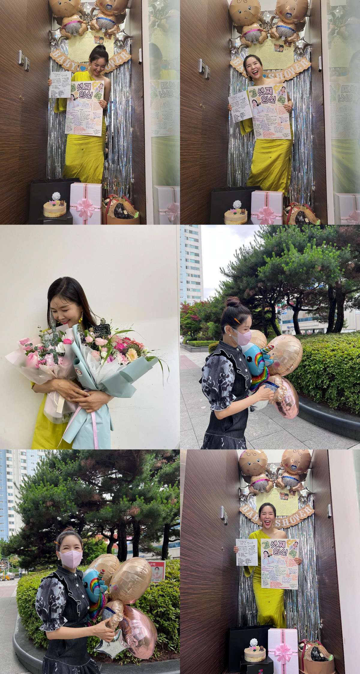 사진 속 장영란은 베이비샤워를 즐기고 있는 모습. 꽃다발과 풍선, 선물에 편지까지 안고 즐거워하는 모습이 인상적이다.