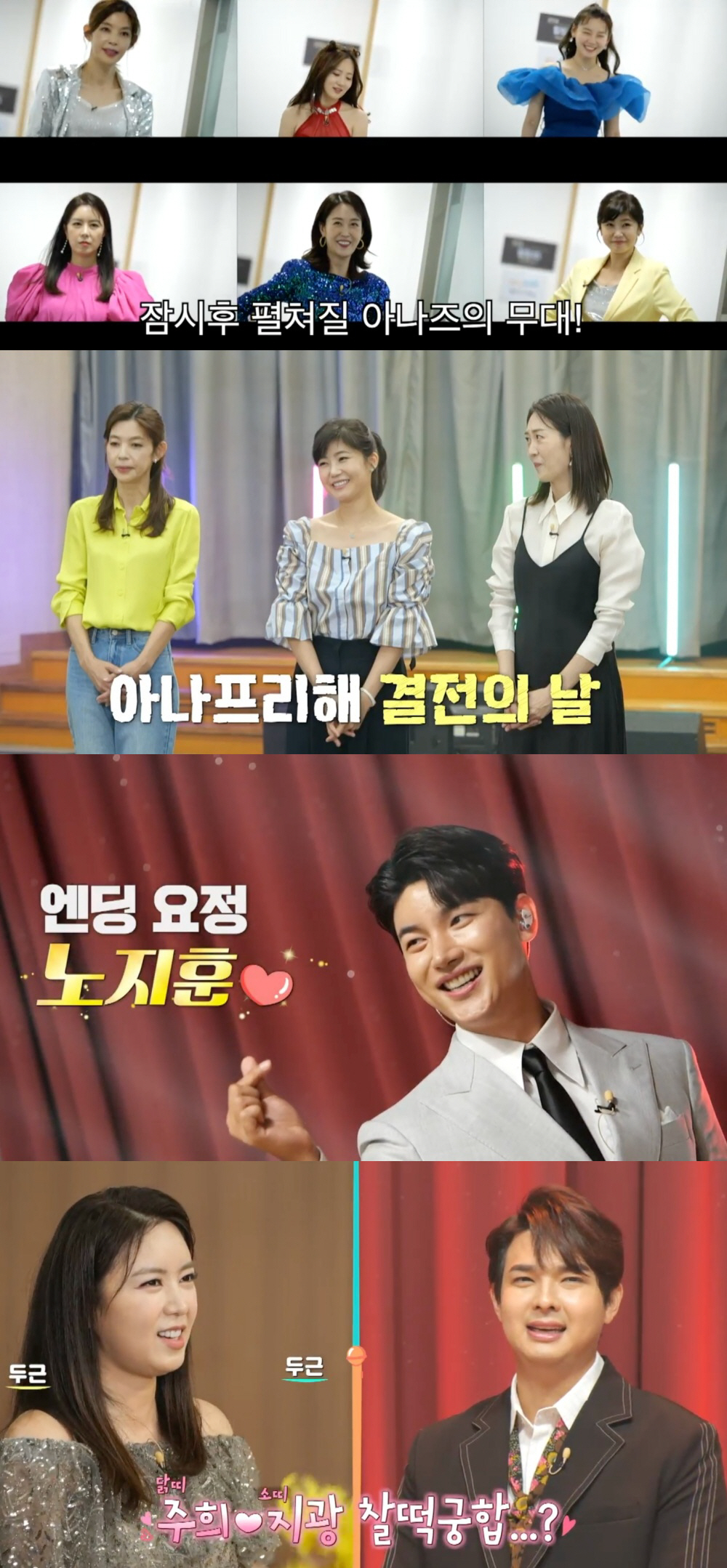 뜻밖의 설렘을 안긴 순간은 김주희와 류지광의 만남이었다. 미스코리아 출신 김주희는 류지광이 무대 위에 등장하자 밀당 없는 시그널을 보냈다. 류지광은 김주희의 첫인상을 묻는 질문에 "좋다. 평소 운동을 좋아해서 건강한 스타일을 좋아하는데 굉장히 건강해 보이신다"라고 밝혀 현장을 핑크빛 분위기로 물들였다. 닭띠와 소띠의 운명적인 만남에 기대의 반응이 쏟아졌지만, 김성주는 "소 닭 보듯 한다"라며 난데없는 찬물 끼얹기로 폭소를 안겼다.
