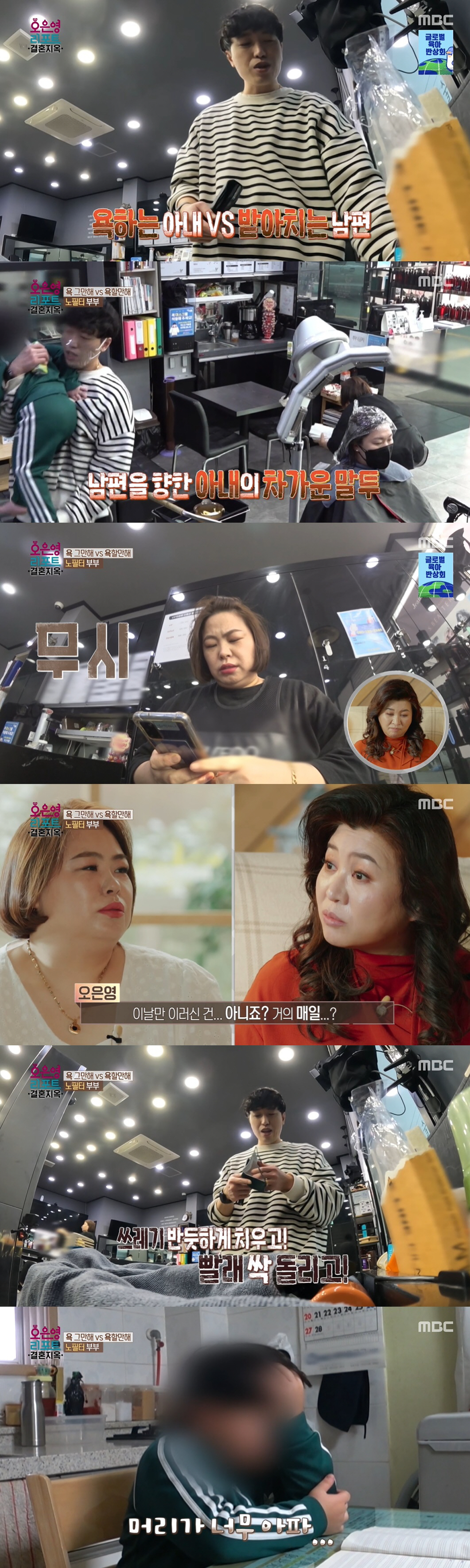 부부가 미용실에서 주고받는 대화에는 고성과 욕설, 짜증이 대부분을 차지했다. 아내는 아들이 미용실을 뛰어다니며 놀자 남편에게 "야! 야! 똑바로 안 봐?"라고 날카롭게 말해 분위기는 어두워지기 시작했다. 이후에도 아내는 남편이 말만 걸어도 욕설을 하며 짜증을 냈고 남편이 재차 질문을 해도 아예 답을 안 하기도 했다. 아이 손님이 있을 때도 남편을 향해 욕설을 했다. 오은영은 깜짝 놀라 VCR을 중단시키며 "이날만 이러신 건 아니죠?"라며 아내에게 물었는데 아내는 "거의 매일 그런다"라고 답했다.
