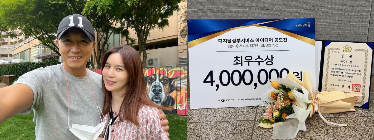 공개된 사진 속에는 제5회 전자정부의 날을 맞아 국무총리상을 수상하는 딸 다비다 양의 모습이 담겼다. 앞서 진태현은 최근 다비다 양이 22년 디지털정부서비스 아이디어 공모전에서 최우수상인 국무총리상을 수상했다고 밝혔던 바. 진태현은 수상을 위해 시상대에 오른 다비다 양의 사진에 하트 그림을 그리며 애정을 마음껏 드러냈다.