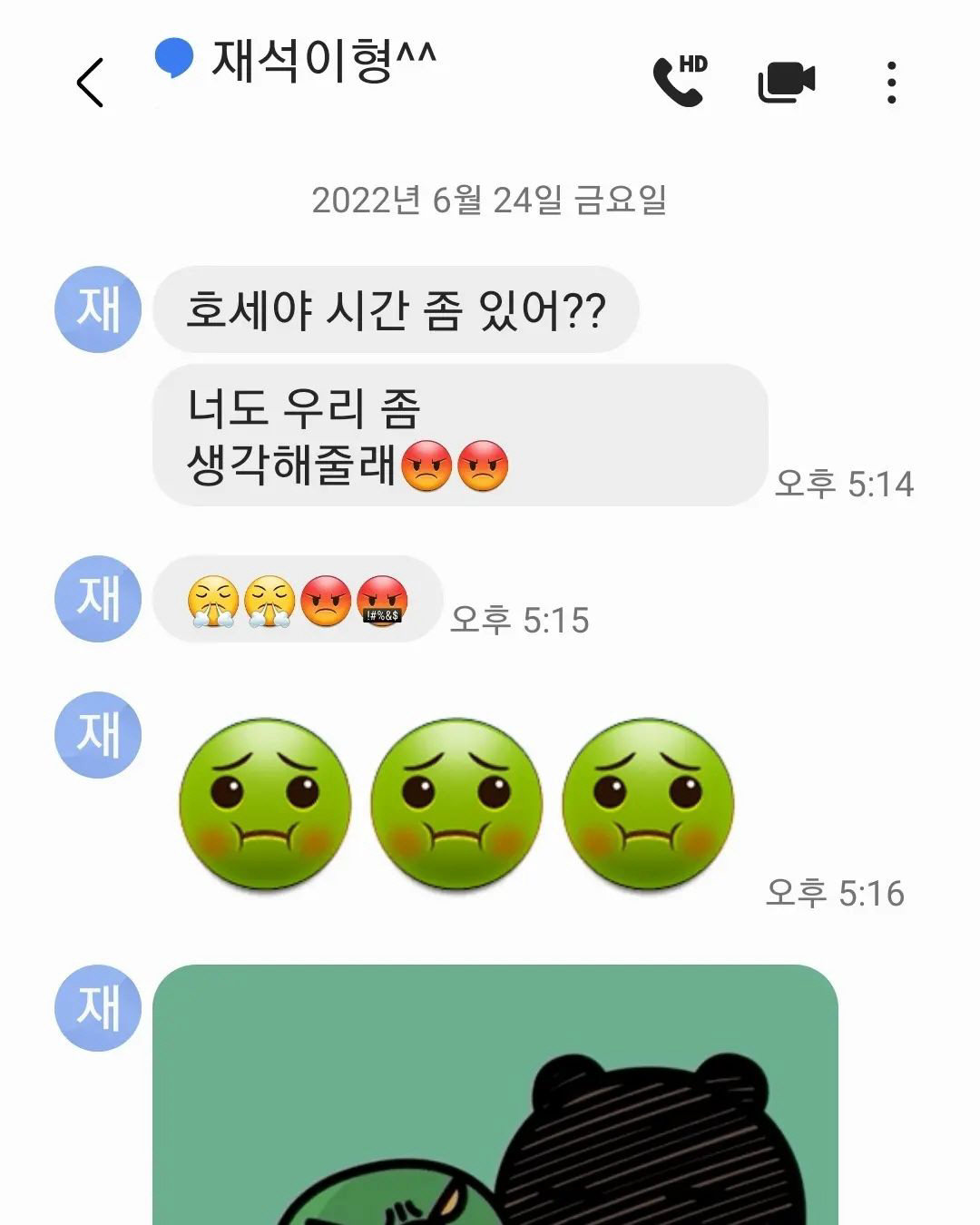 유재석은 조세호에게 "호세야 시간 있어? 너도 우리 좀 생각해줄래"라며 화가 난 이모티콘과 구토를 참는 이모티콘 등을 보냈다. 이는 조세호가 남긴 하나의 게시글 때문. 조세호는 이날 자신의 인스타그램에 "혹시 잠깐 시간 있어? 그럼.. 내 생각 조금만 해줄래?"라며 "조세호, 꼴값"이라는 글을 남겼다.