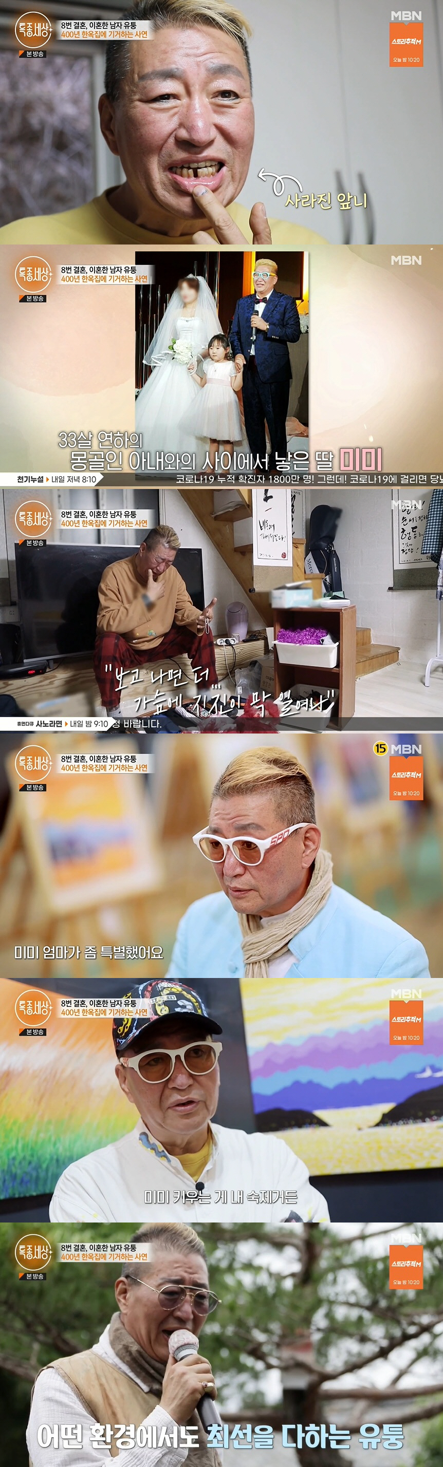 2019년 8번째 이혼 후 유퉁은 전 재산을 투자해 막창 사업을 시작했지만, 코로나로 인해 사업이 실패하며 빚만 떠안게 됐다. 이에 현재는 친구의 도움을 받아 밀양의 한옥에서 지내며 그림 작업에 몰두하고 있다고. 이날 공개된 유퉁의 작업실 한쪽에는 딸의 사진이 크게 걸려져 있어 눈길을 끌었다. 그는 "바람 같이 이사를 다니더라도 꼭 먼저 챙기는 것, 1순위로 챙기는 게 미미 사진"이라고 말했다.