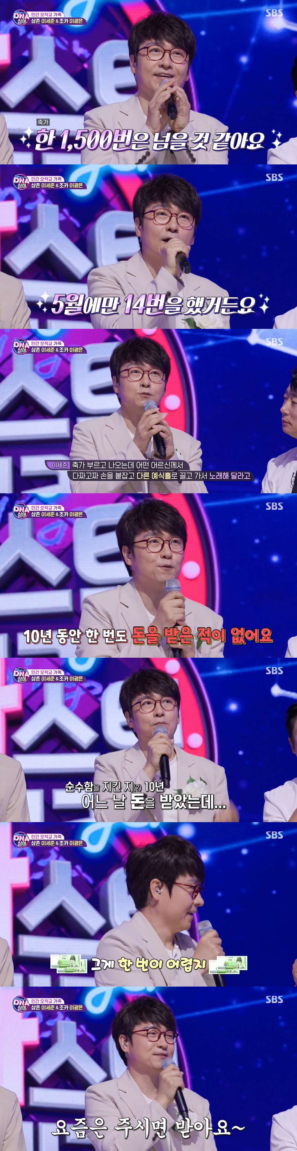 [스포츠조선닷컴 정안지 기자] 유리상자 이세준이 "축가 1500번 할 동안 돈을 받은 적 없다"고 털어놨다.
