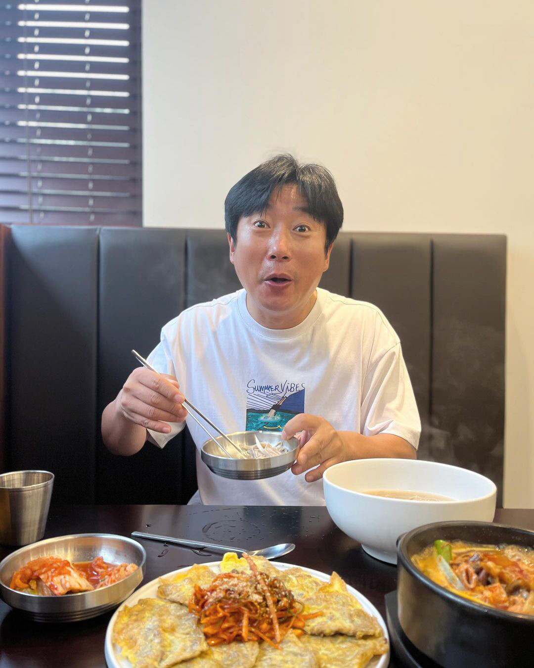 사진 속에는 이수근 박지연 부부의 행복한 일상이 담겨있다. 점심 데이트에 신난 듯 셀카를 촬영 중인 부부. 다정하게 서서 포즈를 취하고 있는 모습 속 박지연은 남편 이수근에게서 눈을 떼지 못하는 등 알콩달콩한 일상이 시선을 끈다. 또한 음식 맛에 푹 빠진 듯 감탄 중인 모습을 다소 코믹하게 표현 중인 이수근의 모습이 웃음을 안긴다.