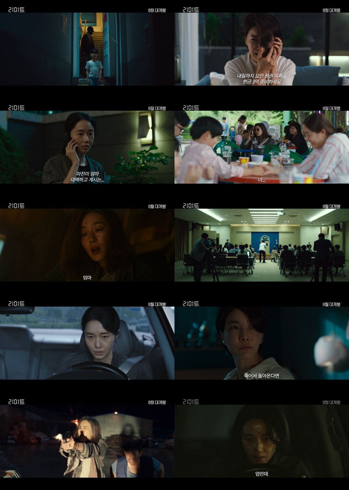 '리미트'는 아동 연쇄 유괴사건 피해자 엄마의 대역을 맡은 생활안전과 소속 경찰이 사건을 해결하던 도중 의문의 전화를 받으면서 최악의 위기에 빠지게 되는 이야기를 그린 작품이다. 이정현, 문정희, 진서연, 박명훈, 최덕문, 임철형, 박경혜 등이 출연했고 '스파이'의 이승준 감독이 메가폰을 잡았다. 오는 8월 17일 개봉한다.