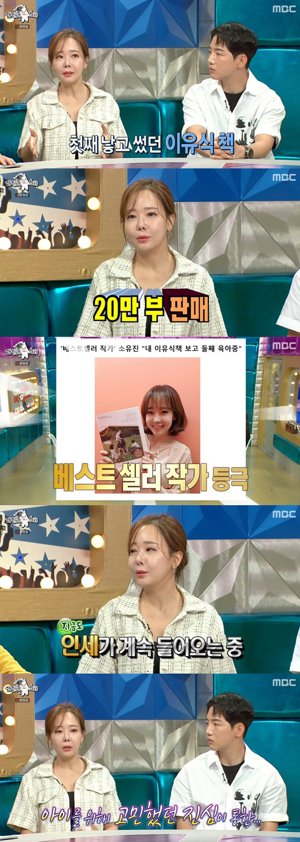또한 작가로도 데뷔했던 소유진은 "첫째 아들을 낳고 이유식 책을 썼는데 20만부 나갔다. 인세가 지금도 계속 들어오고 있다. 너무 감사하다. 아이를 위해 고민했던 진심이 엄마들에게 통했던 것 같다"고 밝혔다.
