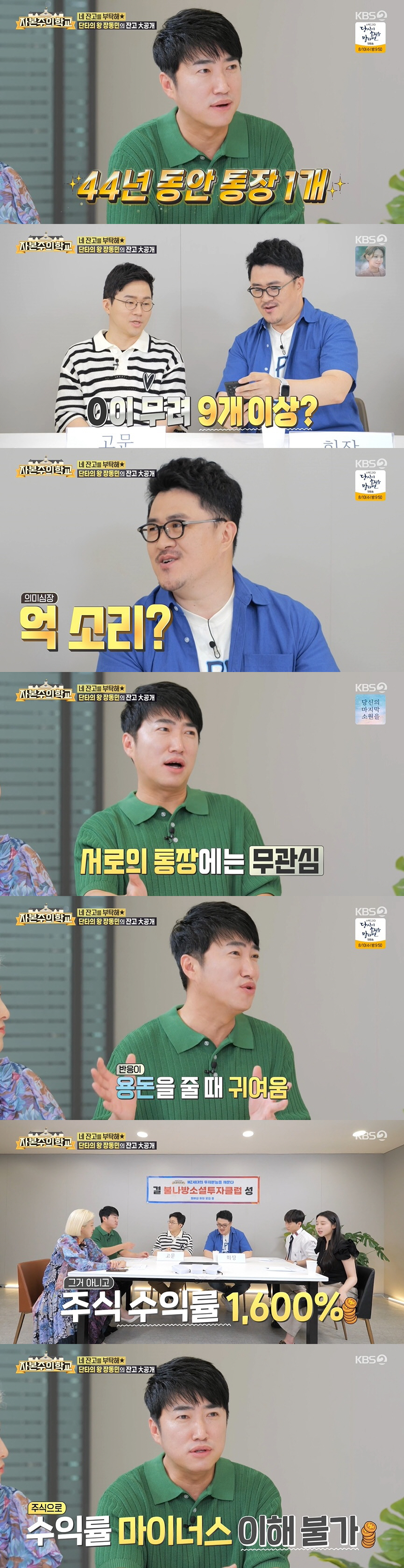 이에 서은광은 "나도 희망이 좀 보인다. 나와 비슷하다. 나도 통장이 한 개고, 투자 실패를 많이 했다. 나의 롤모델"이라며 장동민을 향한 존경심을 드러냈다.