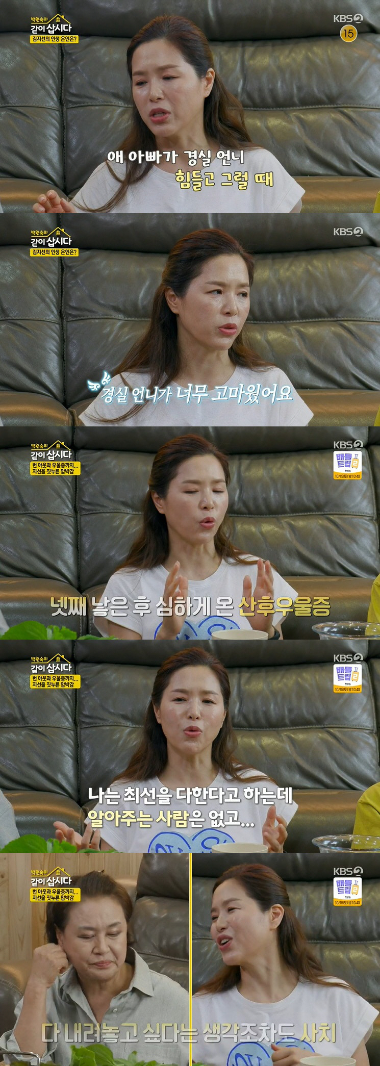 [스포츠조선닷컴 이우주 기자] '같이 삽시다' 김지선이 심각했던 산후우울증을 고백했다.
