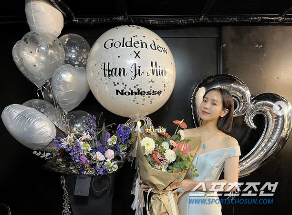 이번에 공개된 사진에서 한지민은 광고 촬영현장에서 주최측이 마련해준 풍선 등 서프라이즈 이벤트를 즐기는 모습. 요즘 유행하는 헤어스타일로 머리를 짧게 잘라 눈길을 끈다.