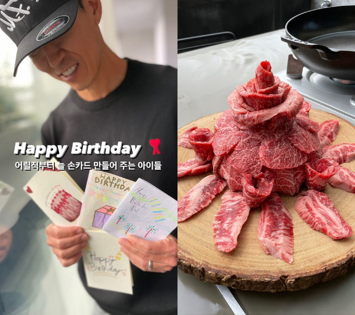 정혜영은 10일 자신의 SNS를 통해 "한우케이크^^ 센스 있는 생일 케이크 후다닥 테라스에서 고기 파티"라는 글과 함께 여러 장의 사진을 게재했다. 공개된 사진 속에는 한우를 구워 먹으며 션의 생일을 기념하는 가족들의 모습이 담겼다. 션의 생일 케이크는 무려 '한우 케이크'. 션 정혜영 부부의 4남매는 아빠 션을 위해 정성이 가득 담긴 손편지도 선물했다. 션 정혜영 부부의 이상적인 가족 일상이 훈훈함을 자아낸다.