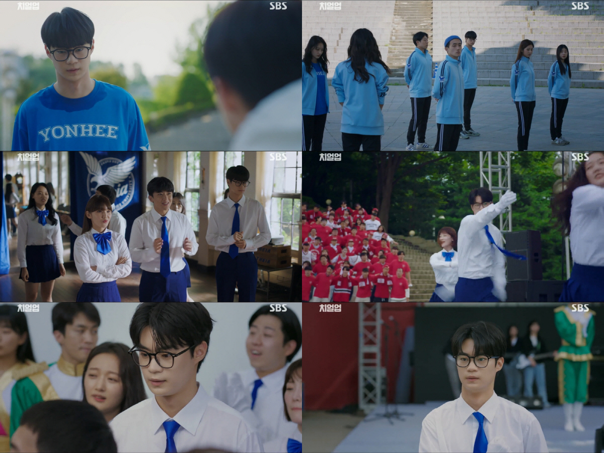 특히 도해이(한지현 분)가 돈을 대가로 응원단에 입단한 사실과, 거짓말을 하고 연습에 참여하지 않은 것, 달리기로 합동 응원전 단상에 올라갈 신입생으로 뽑힌 것 등을 지켜보며 까만 뿔테 안경 뒤로 매서운 눈빛을 보내 긴장감을 더하고 있다.
